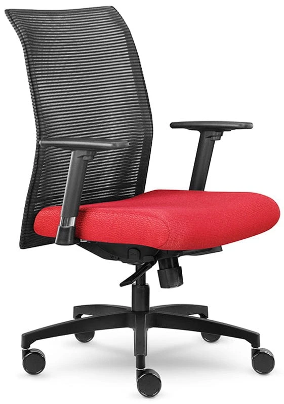 Other features include a foam padded seat cushion upholstered in your choice of fabric or vinyl, pneumatic seat height adjustment, 360-degree swivel, back height adjustment, tilt with tilt lock, tilt tension adjustment, adjustable height T-shape task arms, and a high profile polished aluminum base with dual wheel carpet casters standard. Additional caster options are available for a minimal charge. This mesh back ZIP chair has a weight capacity of 350 lbs. and meets or exceeds ANSI/BIFMA standards.