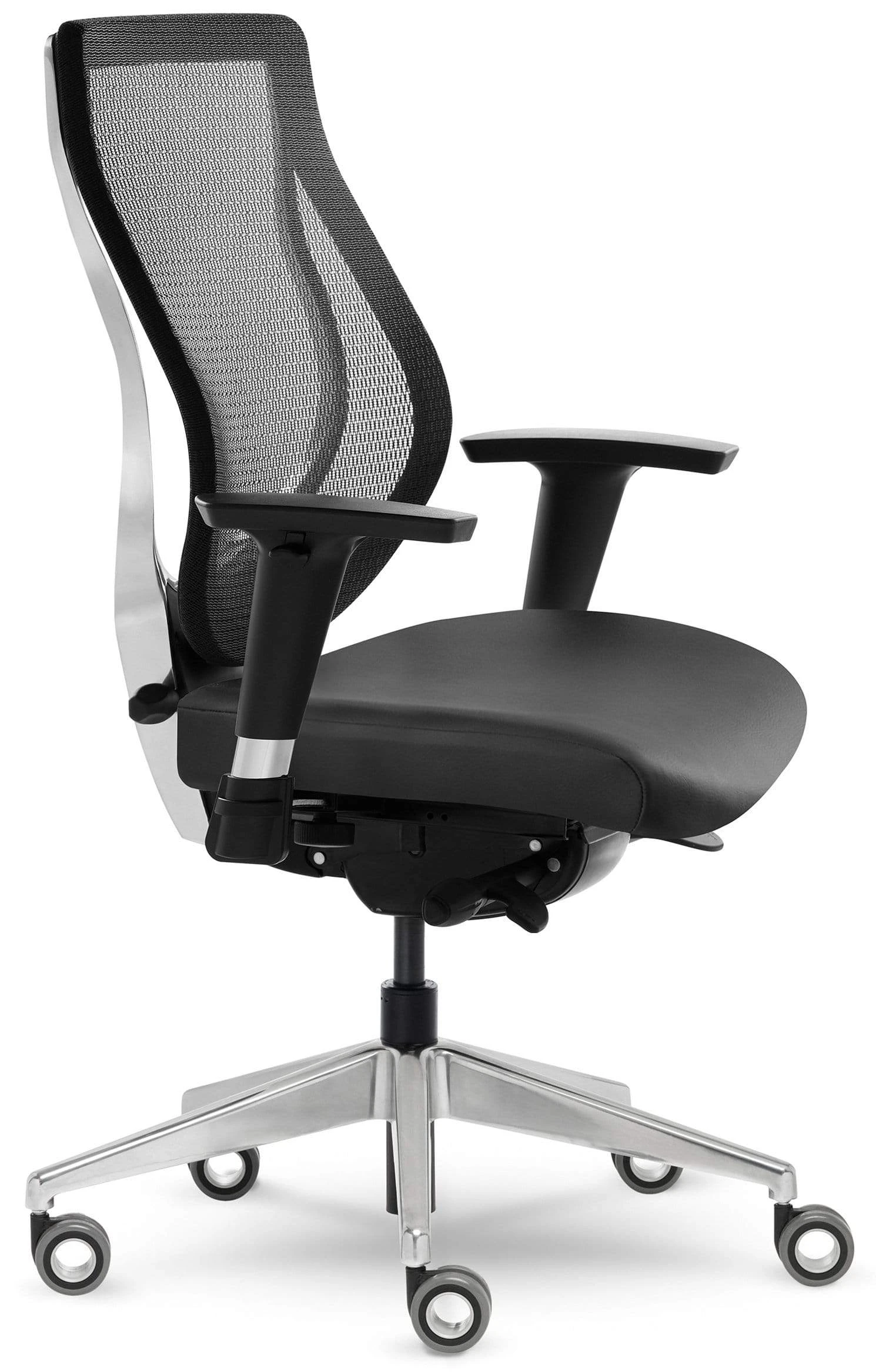 Other features of the You midback chair include innovative back suspension, pneumatic seat height adjustment, tilt with tilt lock and adjustable tilt tension control, ratchet back height adjustment, 360-degree swivel, molded foam seat cushion standard with your choice of commercial-grade upholstery, breathable elastomeric mesh backrest for maximum ventilation, adjustable task arms (chair is pictured with multi-functional task arms), and a heavy-duty angled nylon base with dual wheel carpet casters are standard. An attractive polished aluminum base, seat slider (allows for seat depth adjustments), and hard floor casters are all available for this model as well for an upcharge. This chair meets or exceeds ANSI/BIFMA safety standards.
