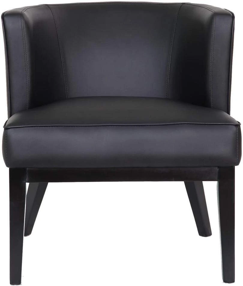 The Black Ava Accent Chair is beautifully upholstered in plush Black CaressoftPlus, keeping you comfortable through extended periods of time. It has an extra large padded seat for enhanced comfort and durability. It sits on Black wood legs that are both sturdy and stylish. This accent chair features an elegant, contemporary design that can really elevate and provide your space with an upscale look. This is the chair for complementing the decor with comfort and class.