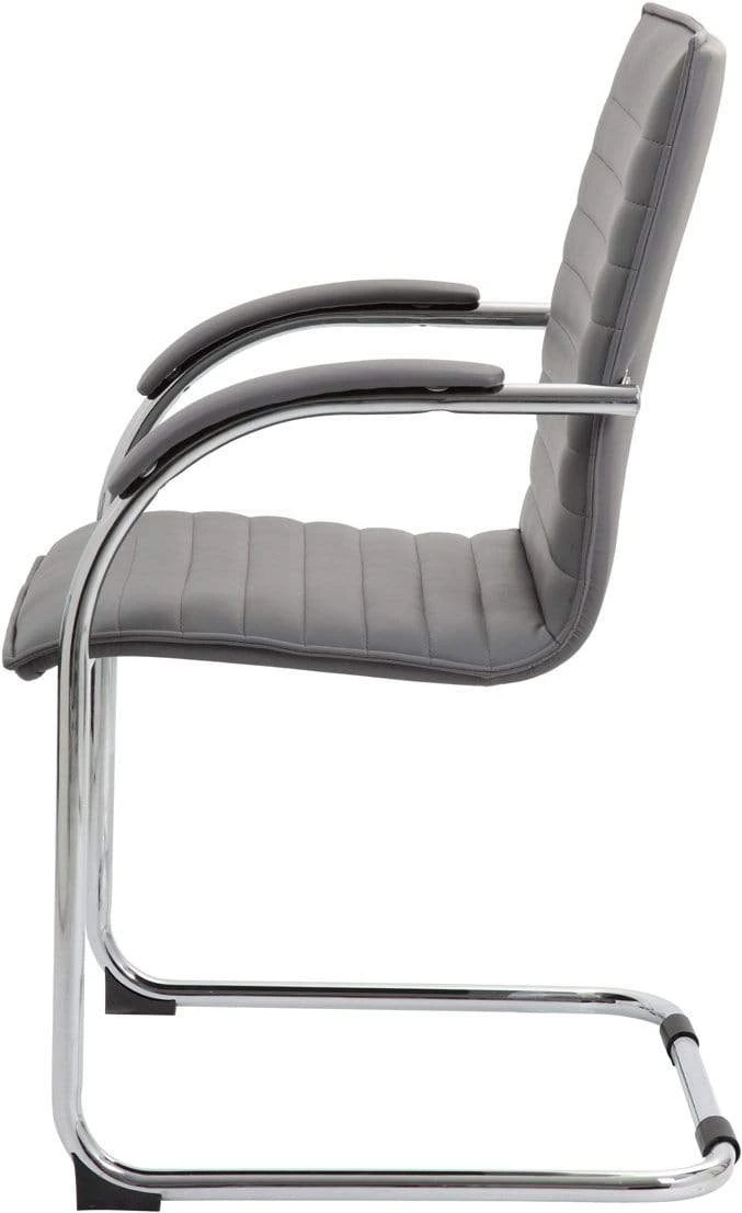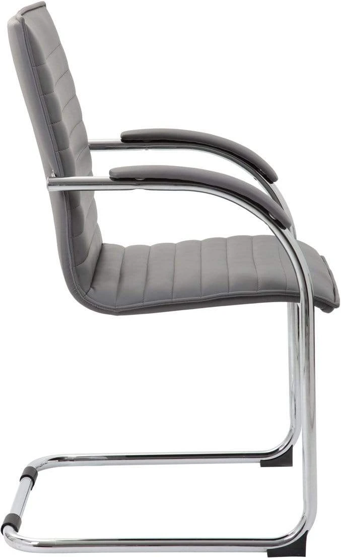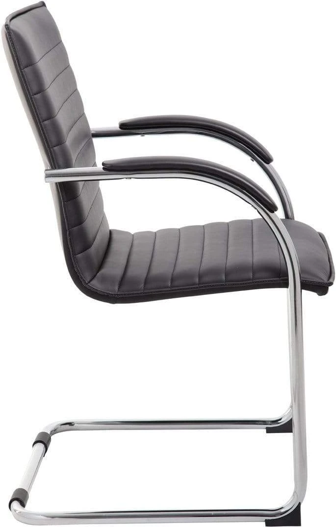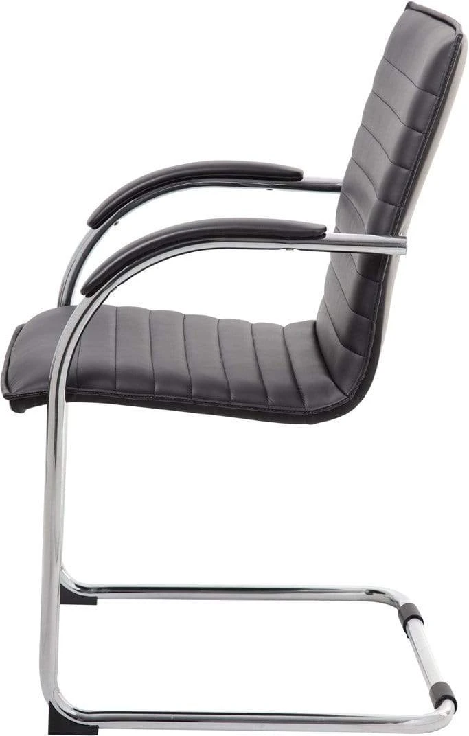 This strikingly luxurious side-chair is designed with a high-quality chrome frame that screams class and an easy to clean black vinyl seat that is beyond comfortable for any guests. The base of the chair is a chrome cantilever design and offers a weight capacity of 275 lbs. This chair itself is the perfect blend of class and professionalism, without sacrificing comfort or quality. The chair is sold 2 pieces per pack and would make a great accompaniment to most any office.