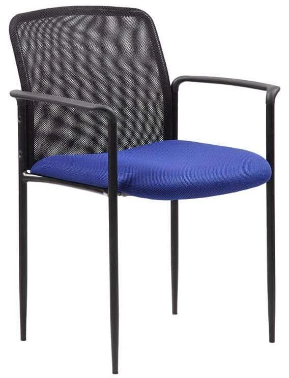 This contemporary styled stackable mesh guest chair from Boss Office Products features a screen mesh back for the ultimate in ventilation and support. Other features include padded fabric upholstered seat, integrated molded arms, waterfall seat edge to help reduce leg fatigue, stackable up to four chairs high for space-saving storage, and a powder coated tubular steel frame with four-post tapered legs. This mesh stacking chair meets or exceeds ANSI/BIFMA standards.