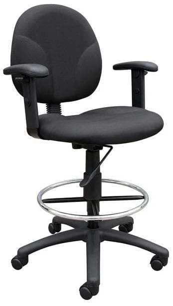 Quality design with a durable and large nylon base to ensure stability, this Boss drafting stool is also is constructed with comfort in mind. The stool features a pneumatic gas lift seat that adjusts to the perfect height and matches a contoured back which provides ample support and helps relieve back strain.