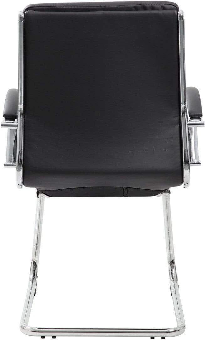 The CaressoftPlus executive guest chair with the metal chrome finish is as comfortable as it is handsome. This is the perfect guest chair for almost any room or office and adds a pop of modernism to any room. The chair is made with a material called CaressoftPlus which is a trademarked vinyl that is an ultra-soft, breathable upholstery that looks & feels like leather, but is more durable & easy to clean. It has been designed with a sturdy chrome cantilever base and has a weight capacity of 275 lbs.