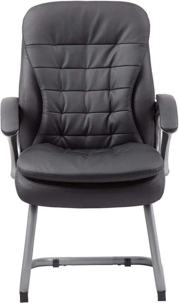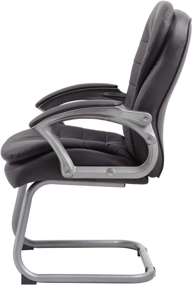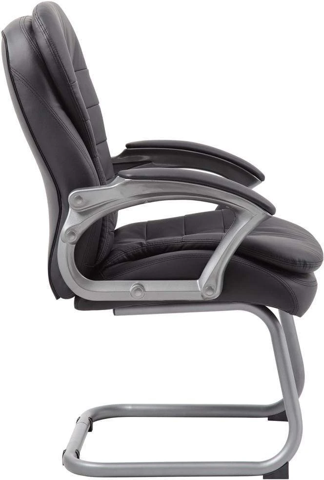 This guest chair pairs perfectly with our mid and high back executive pillow top chairs (B9336 and B9331, respectively) and serves as a welcome addition to any office, conference room, board room, or any environment requiring a dash of modernism. Like its counterparts, it is beautifully upholstered in soft, durable Carressoft and features pillow top cushions for an extra layer of softness. In addition to a pewter finish and padded armrests, it features an ergonomic design with a pewter cantilever base.