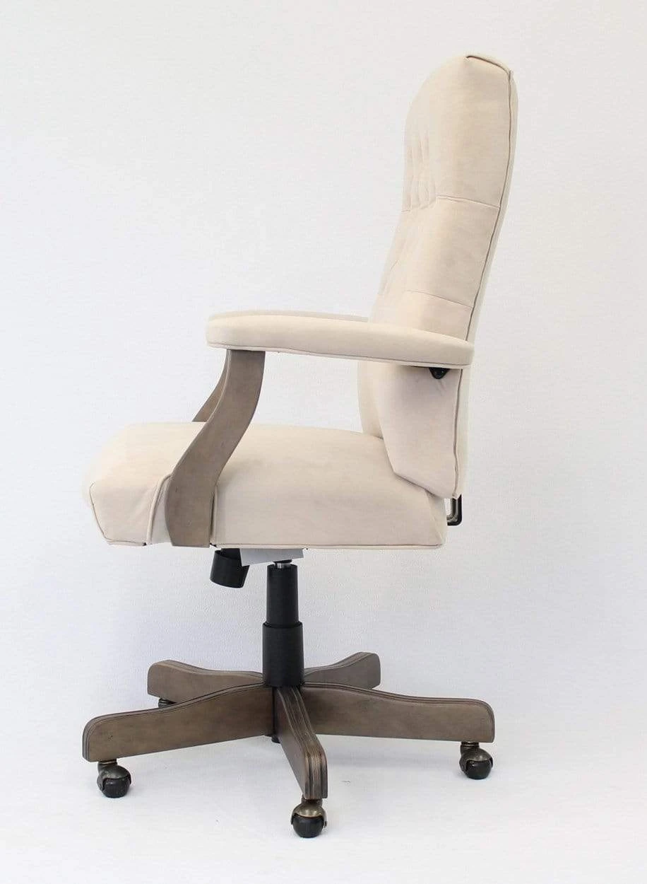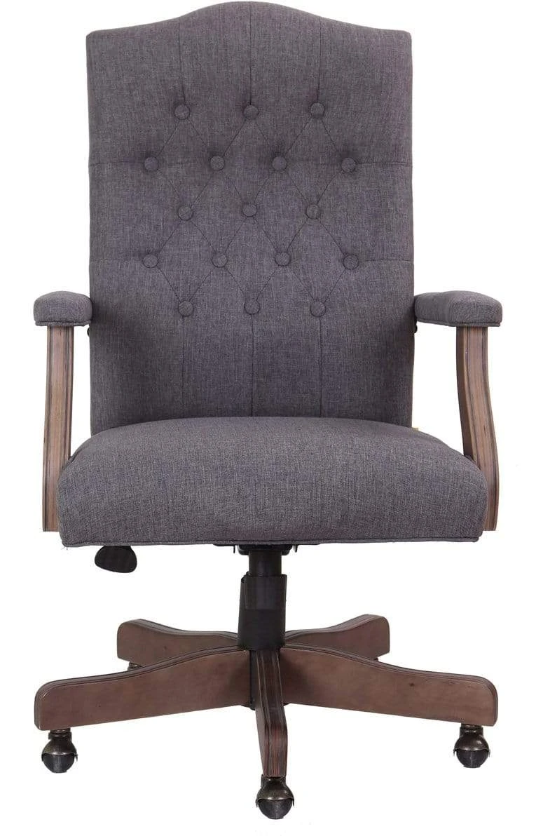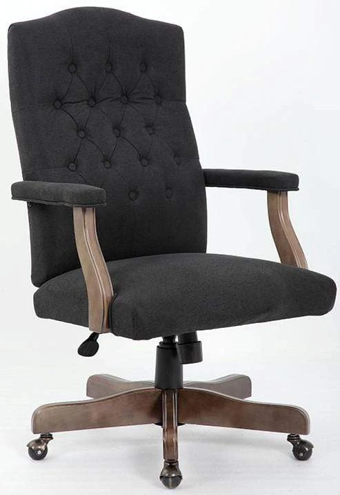 When it comes to class and style, this executive chair in velvet, or linen, with driftwood finished frame is top of the line. The chair boasts a sturdy 27 inch traditional driftwood base with hooded brass casters for an elegant look, with a smooth roll. The padded arms are set at a fixed height and the chair utilizes a spring tilt mechanism. In addition to this, the chair also offers tilt tension, a pneumatic gas lift for easy height adjustability and an upright lock.