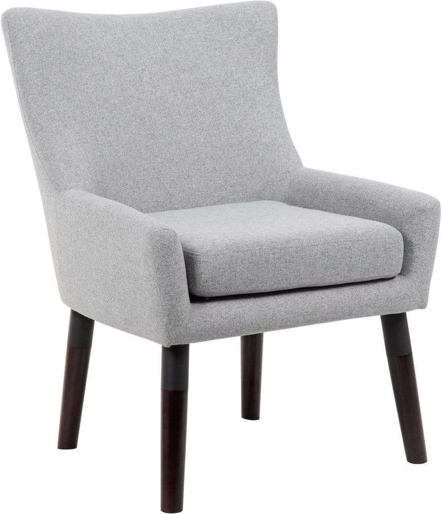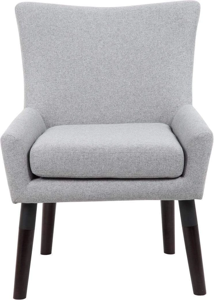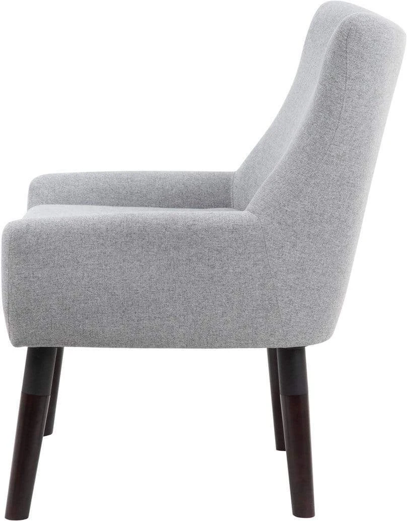 This modern accent chair pairs perfectly with our Carson modern executive chair (B760C-GR). It is elegantly upholstered in commercial grade granite grey linen and features a removable seat cushion and it has a sturdy four legged design with tapered walnut finished wood legs. Its subtle curves, rounded frame, and distinctly modern design are sure to impart an air of sophistication to any office environment. It is also suitable for casual spaces where a little coziness is required.