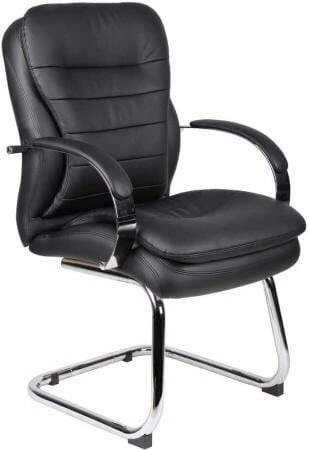 This sled base guest chair from Boss Office Products features Caressoft Plus™ upholstery over thickly padded and properly contoured cushions plus an extra layer of foam for incredible comfort that lasts the entire day. Other features include padded loop arms with chrome finish, a waterfall seat edge that helps promote circulation to the legs, and a heavy duty, metal sled base with chrome finish. **Caressoft Plus™ is a breathable and extremely durable synthetic material that mimics the look and feel of high end, top grain leather. This guest chair meets or exceeds ANSI/BIFMA standards. Dimensions: Seat Size: 20″W x 19.5″D. Seat Height: 21″H. Overall: 41.5″H x 25″W x 28″D. Six year limited warranty from