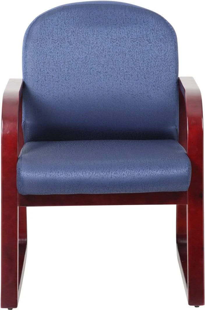 Our wood reception chair is the perfect option for any office, waiting room, conference room, or event. It features a molded wood frame and mahogany finish for a sleek look thatās as alluring as it is professional. Its aesthetic is augmented by extra thick seat and back cushions, which provide a comfortable sitting experience for all your guests and visitors. This is the blue version of our wood reception chair, though it is also available in black, burgundy, or grey.