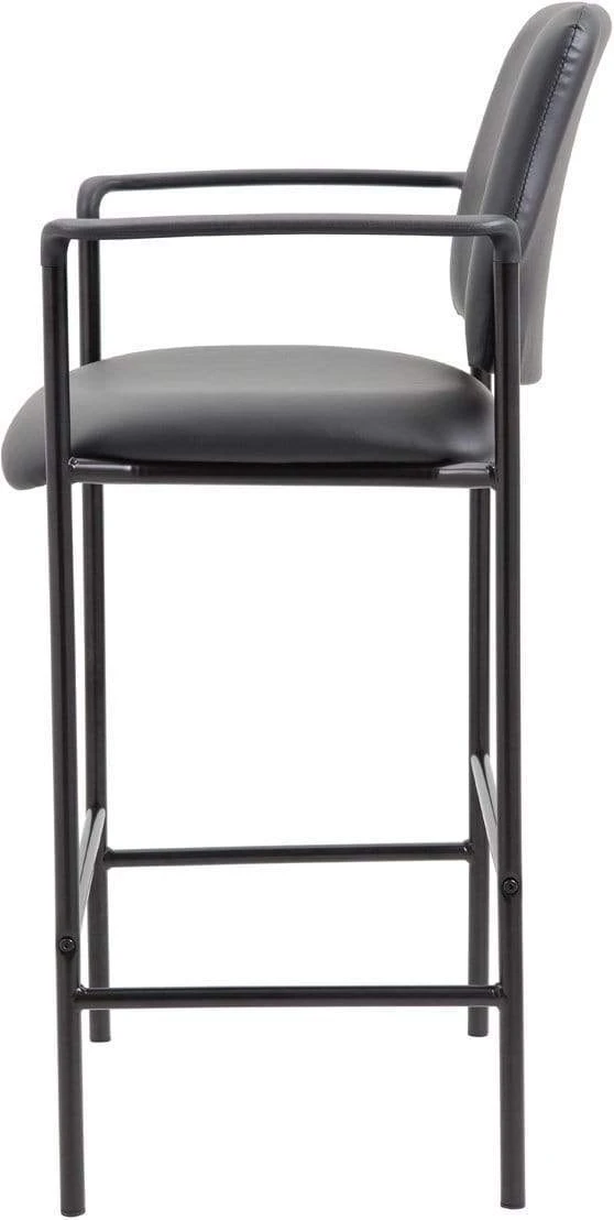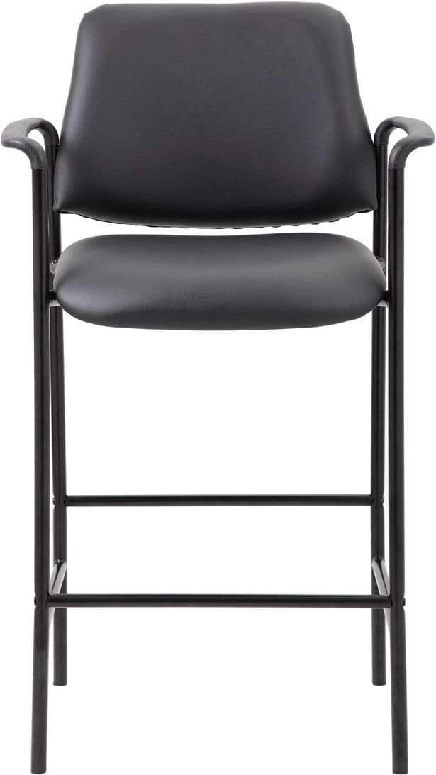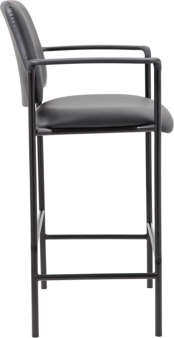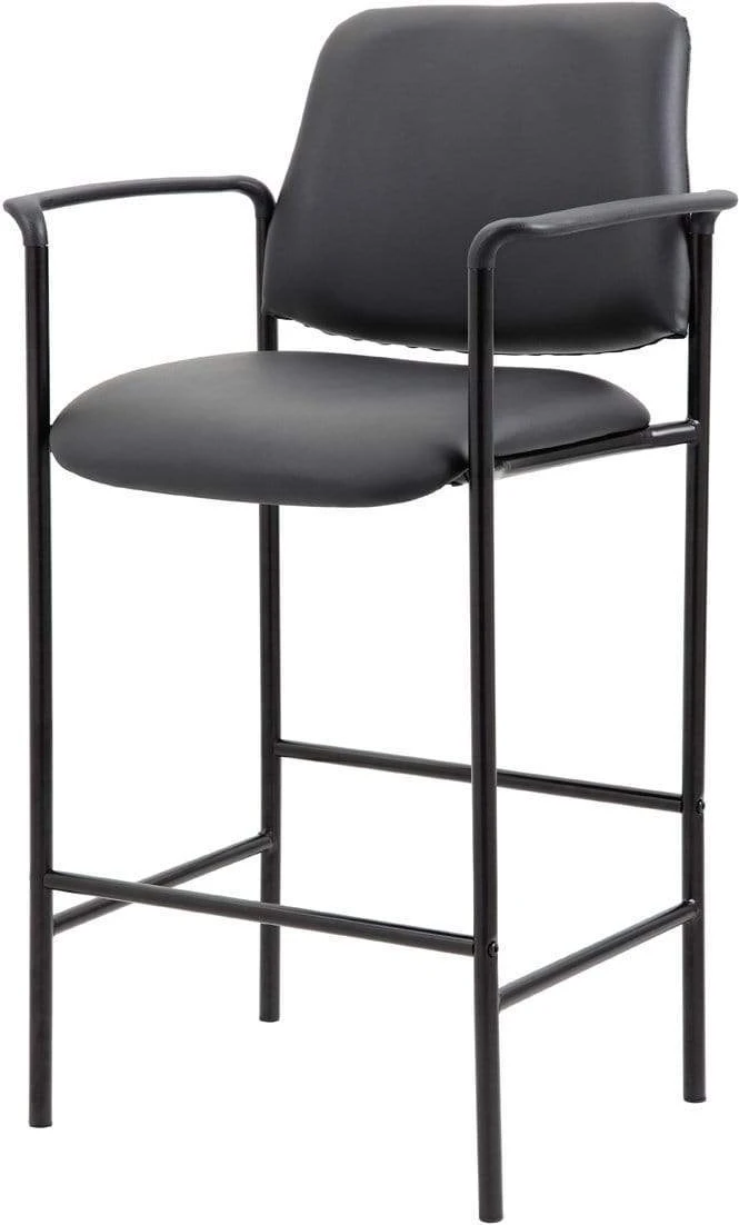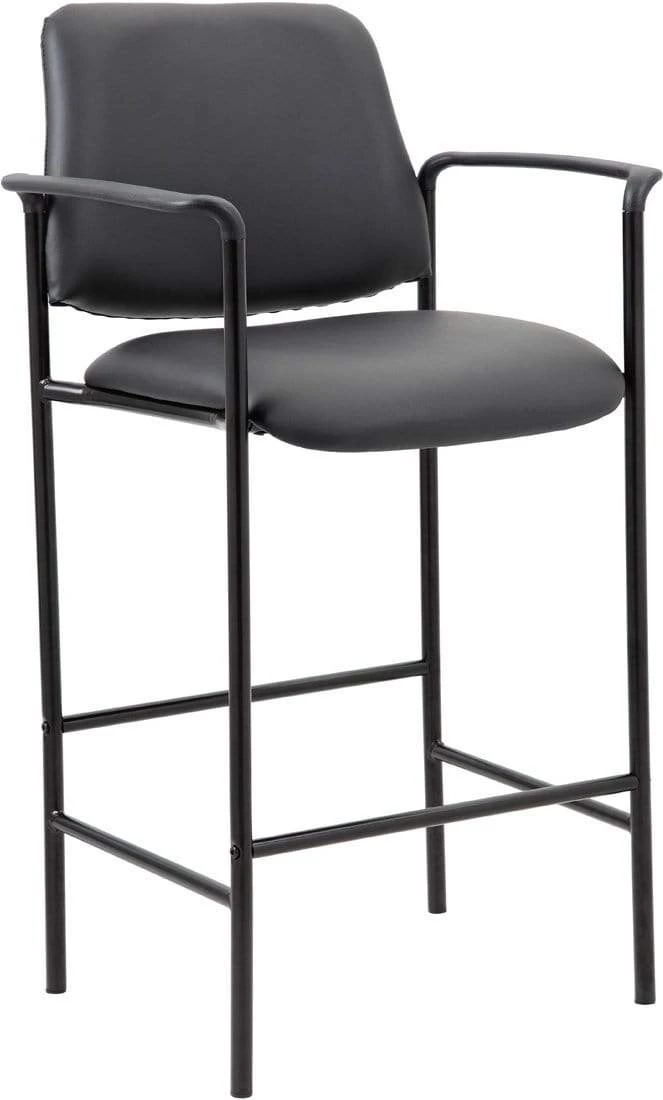 The slender and sleek Boss Square Back Stool in black is a versatile seat that can be utilized from a drafting stool to guest seating. It is made from Caressoft material, an upholstery that looks & feels a lot like leather, but is far more durable and can be easily cleaned with a damp cloth. The stool has fixed arms and a 4 leg tubular base made from sturdy black steel which offers a 275 lbs. capacity.