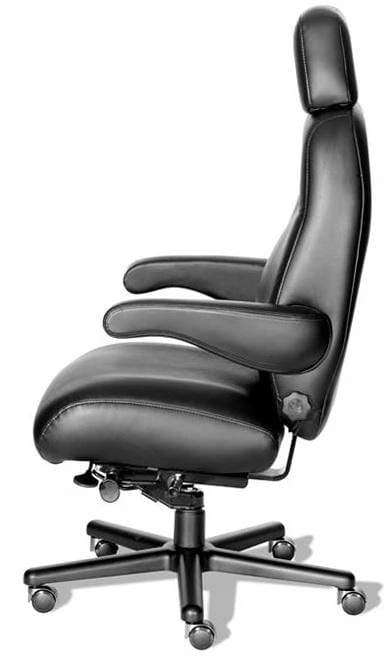 Choose from stain-resistant fabric, commercial grade vinyl, leather with matching mock leather trim, or you can upgrade to an all-leather model. Other features of the Henry chair include thick foam padded and contoured cushions, built-in 2-way adjustable lumbar support, seat slider for seat depth adjustments, heavy duty rocker reclining mechanism, tilt with tilt tension adjustment, pneumatic seat height adjustment, 360-degree swivel, flip-up leather padded armrests for easy entry/exit, optional height/width adjustable task arms available, heavy-duty aluminum base in chrome or black finish, optional all-steel 30-inch base upgrade available, heavy-duty all-steel frame nylon casters standard. Hard surface casters are available at no additional charge. The Henry big and tall chair was designed by a leading auto interior manufacturer. Every ERA big and tall office chair is hand-made in the USA. The ERA Henry chair meets or exceeds ANSI/BIFMA standards.