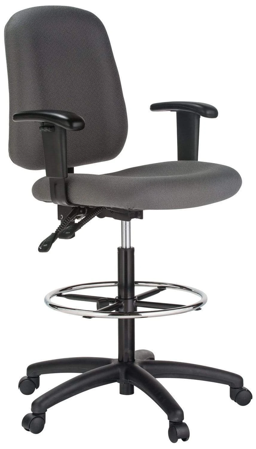 This Harwick fabric upholstered bank teller chair features thickly padded, 3″ thick foam-filled cushions with an ergonomic contour in both the seat and backrest for comfort that lasts the entire day. Choose from commercial grade grey or black fabric.