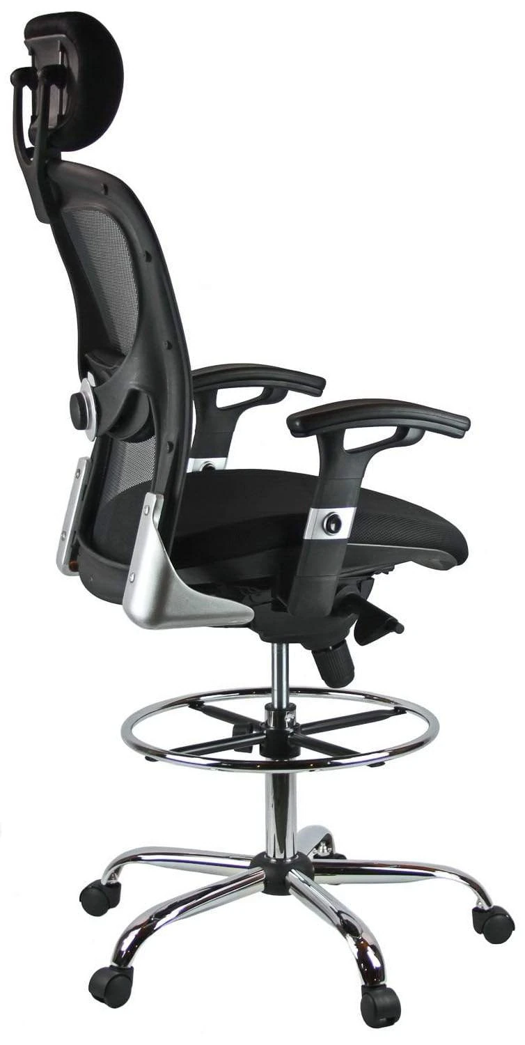This is, without a doubt, the best looking, most contemporary mesh drafting chair we carry. It has gone through minor cosmetic revisions throughout the years to make it even better looking as well (look at the chrome pneumatic cylinder). An adjustable headrest is included as well, at no additional charge. You can choose to either attach it or leave it off. This is simply an incredible chair at this price point.