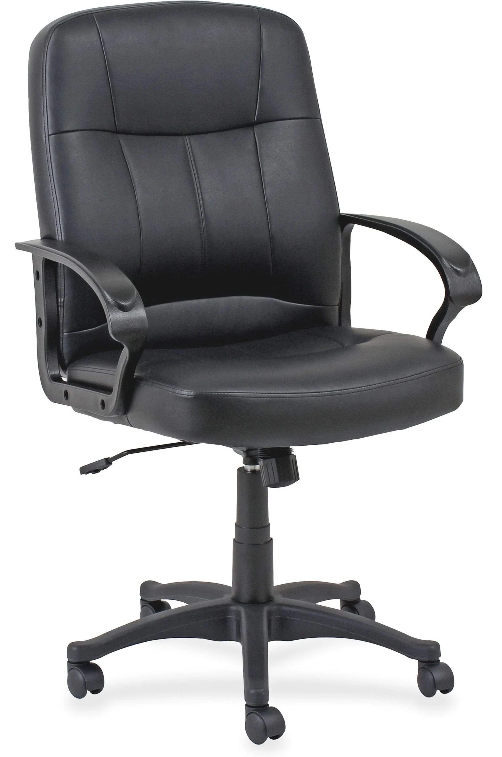 This mid-back leather office chair from Lorell’s Chadwick series features a split leather design for a rich classic look.