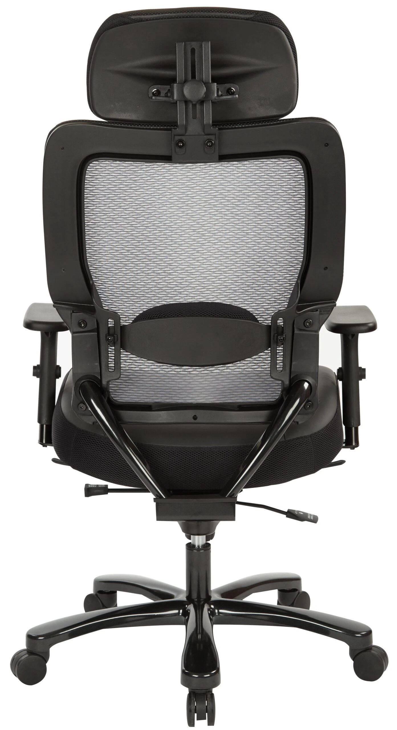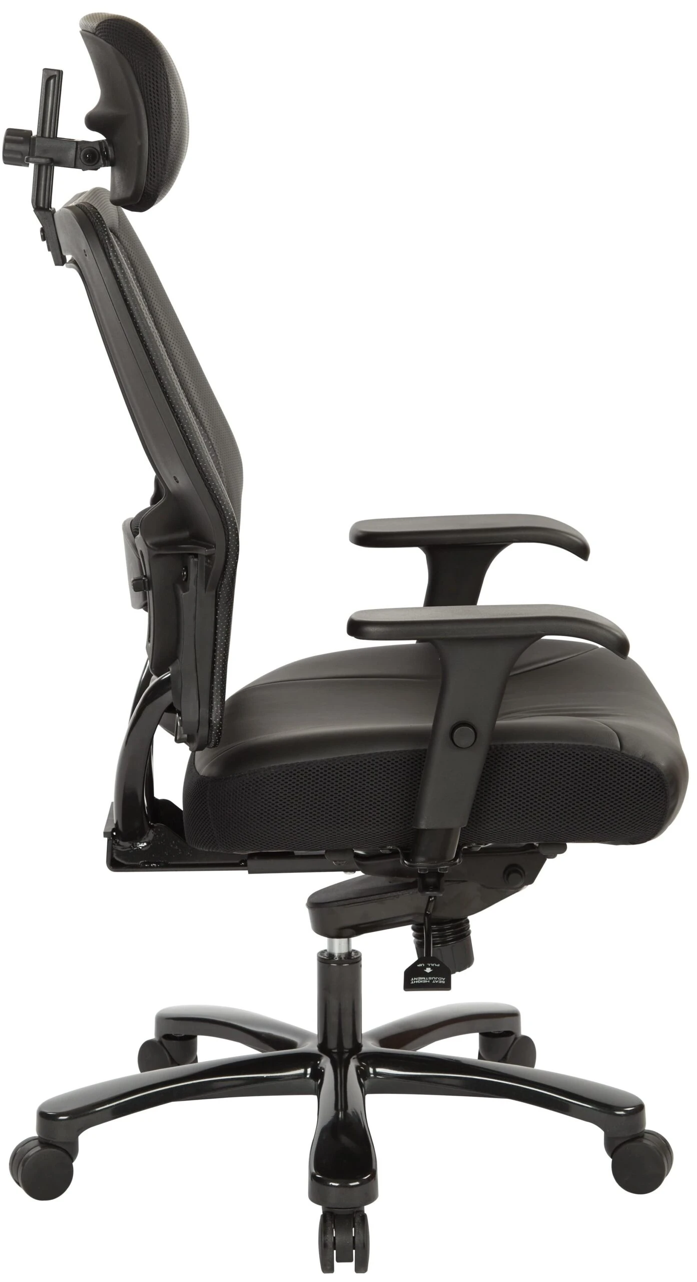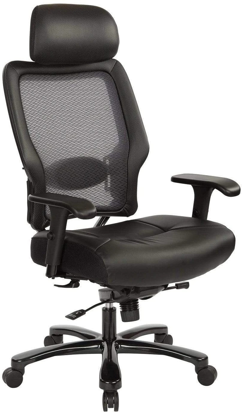 This executive big and tall chair from Space Seating® features a breathable Air Grid Back and a thickly padded, Black Bonded Leather Seat for comfortable extended sitting. Plus, with an adjustable headrest and lumbar support, PU Padded height adjustable arms, and Mid Pivot Knee Tilt, you’ll be able to find the perfect position for optimal support and comfort.