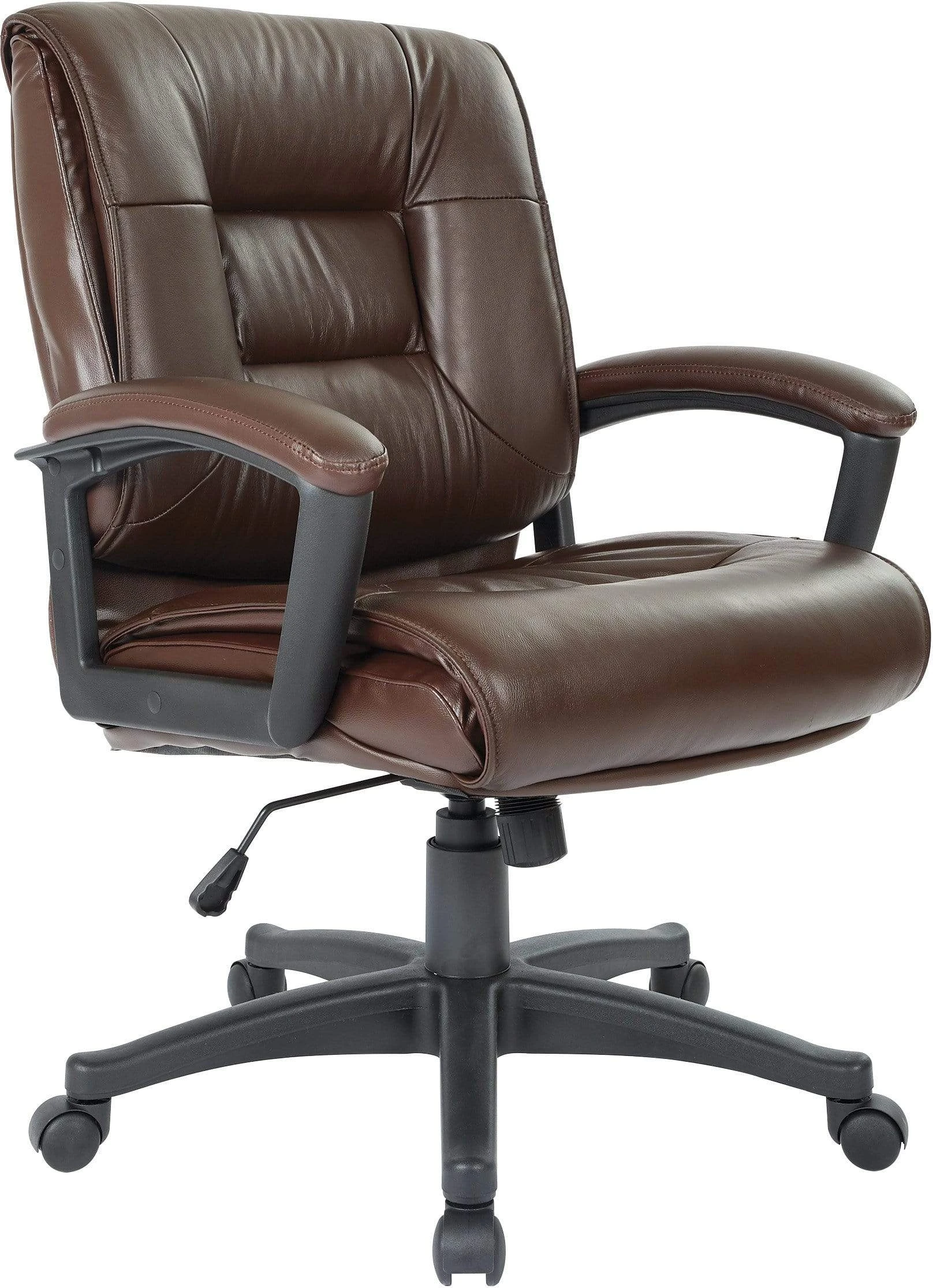 This leather office chair from Office Star features your choice of black glove soft leather or top grain burgundy leather.