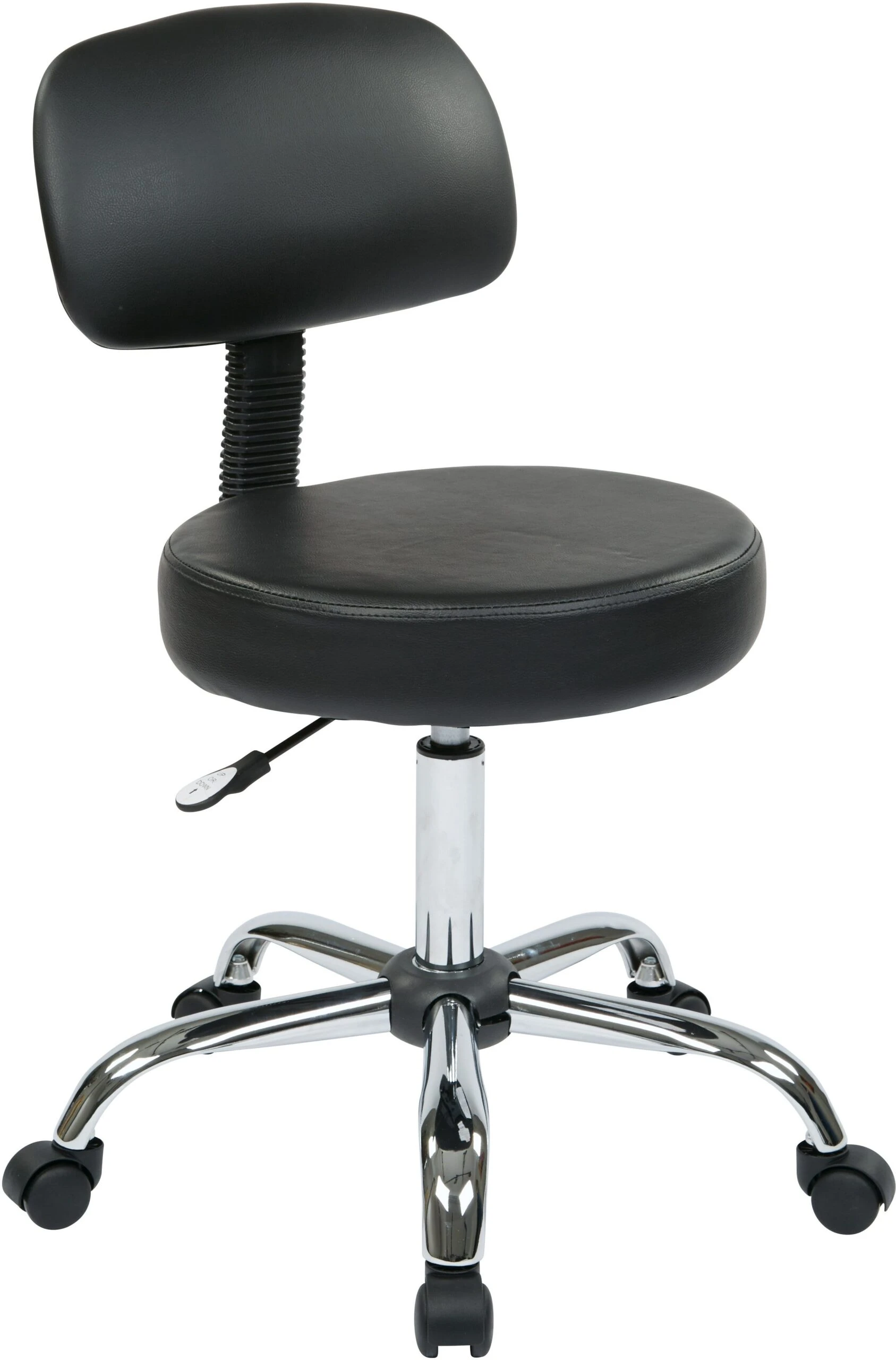 This economical stool is ideal for medical offices and clean rooms. Features include a vinyl padded seat and back, 360 degree swivel, pneumatic seat height, dual wheel casters and a polished chrome base and components for a clean professional appearance. Additional caster options also available. All of these features add up to make this one of our best values in office stools. 15 year manufacturer’s warranty from Office Star.