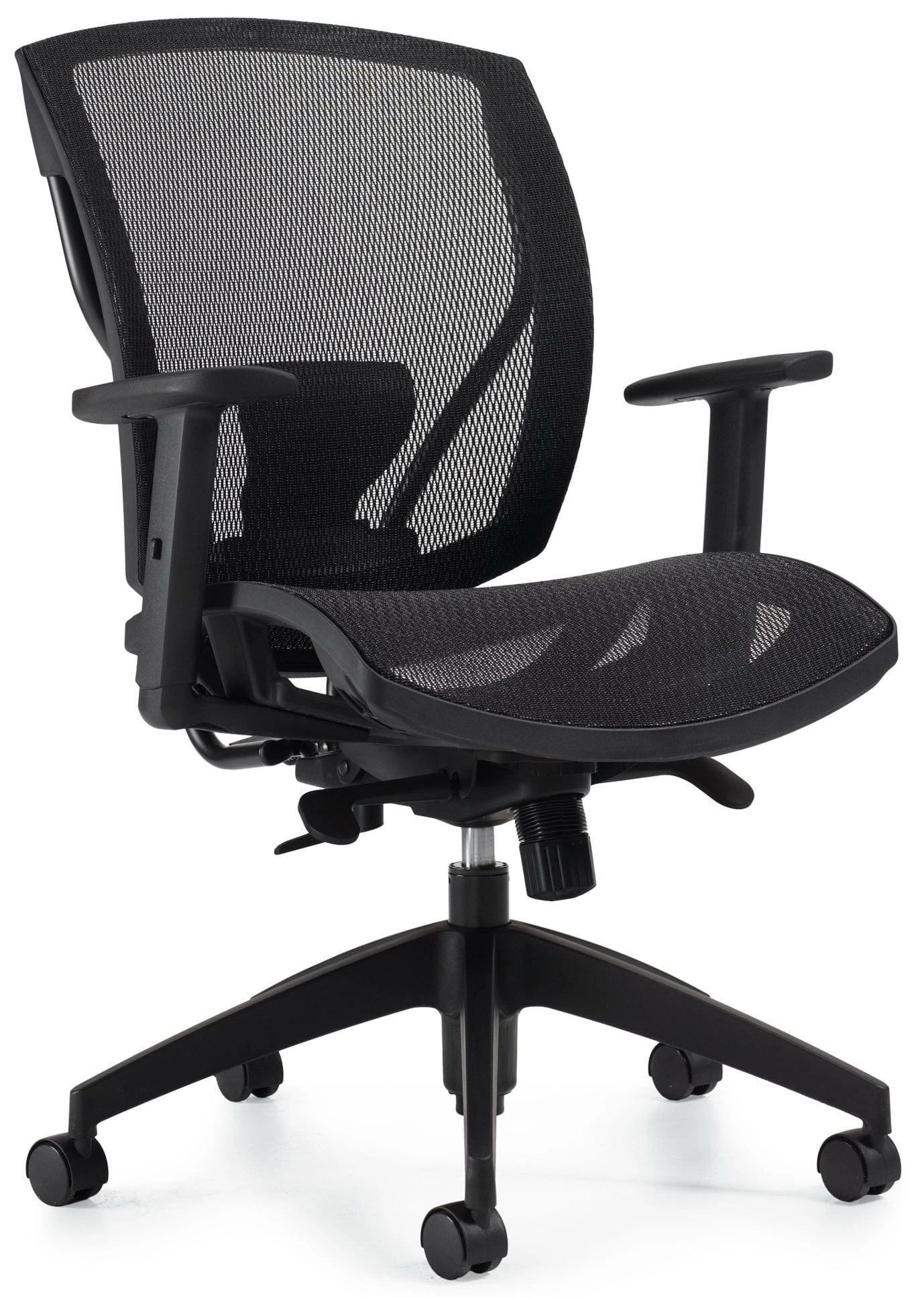 This Offices To Go All Mesh Synchro Tilt Office Chair provides the perfect blend of comfort and adjustability. It features an all mesh back and seat, pneumatic seat height adjustment, height adjustable arms, a multiple-position tilt lock with anti-kickback feature, and adjustable lumbar support for customized comfort. Its synchro-tilt chair control and tilt tension adjustment provide additional convenience. Twin-wheel carpet casters allow it to move easily over any surface.