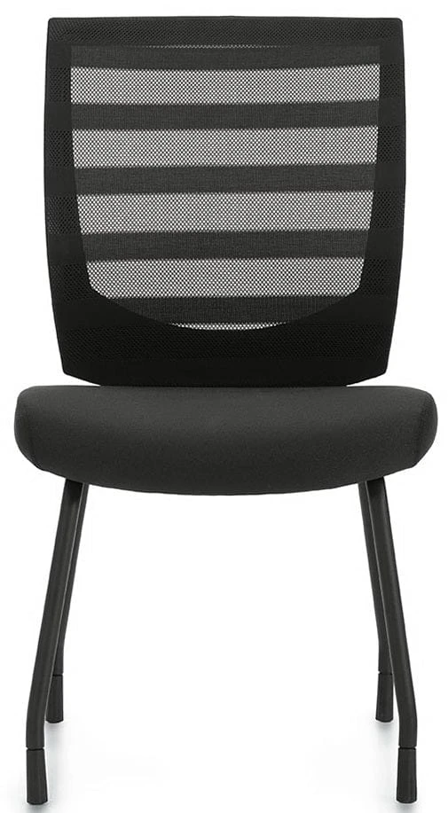 Welcome guests in style with the Offices To Go Armless Mesh Back Visitors Chair. With its contemporary design and sturdy steel frame, this chair provides comfort and support for guests up to 250 lbs., while its modern black mesh back and black woven fabric seat compliment any office décor.