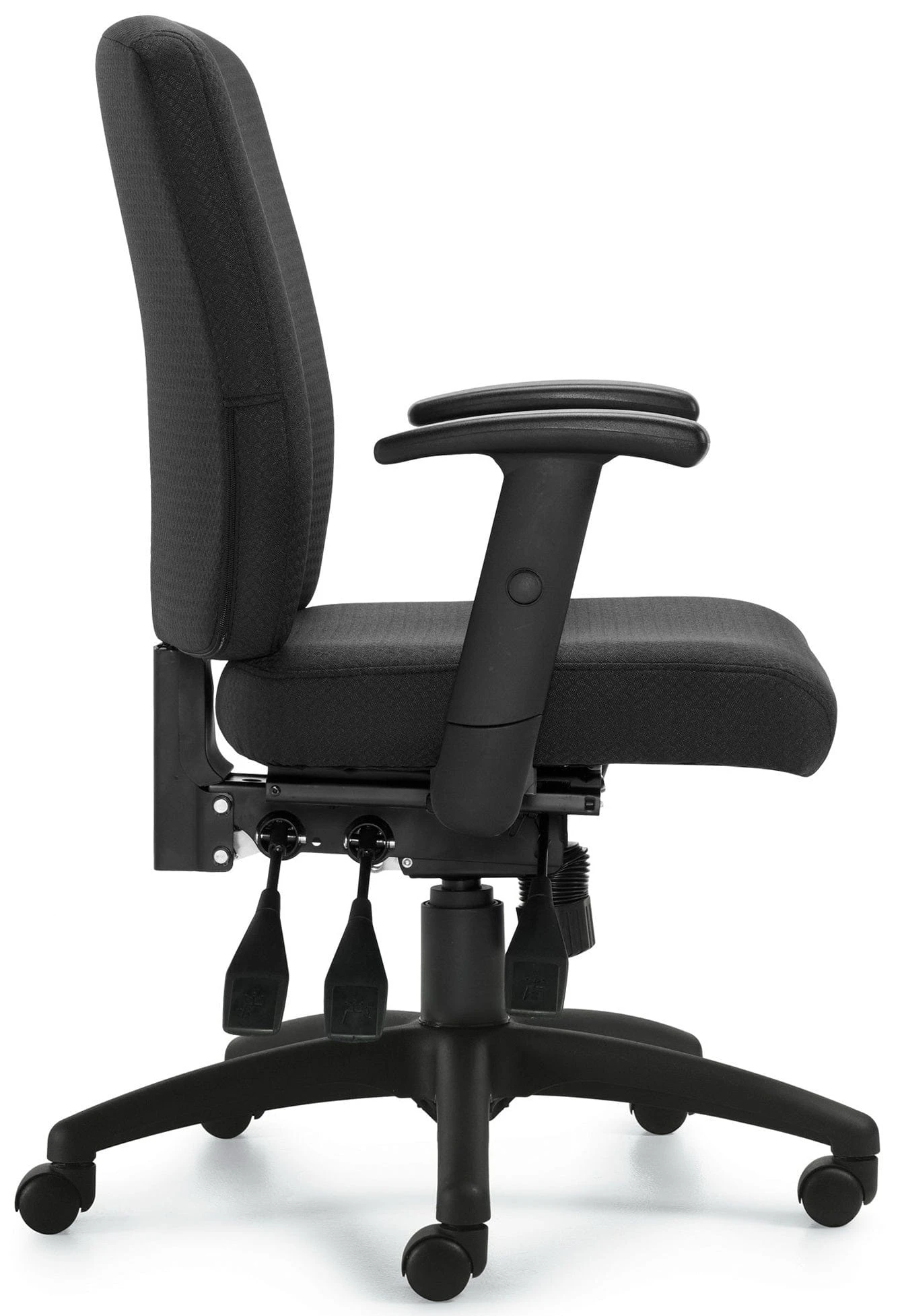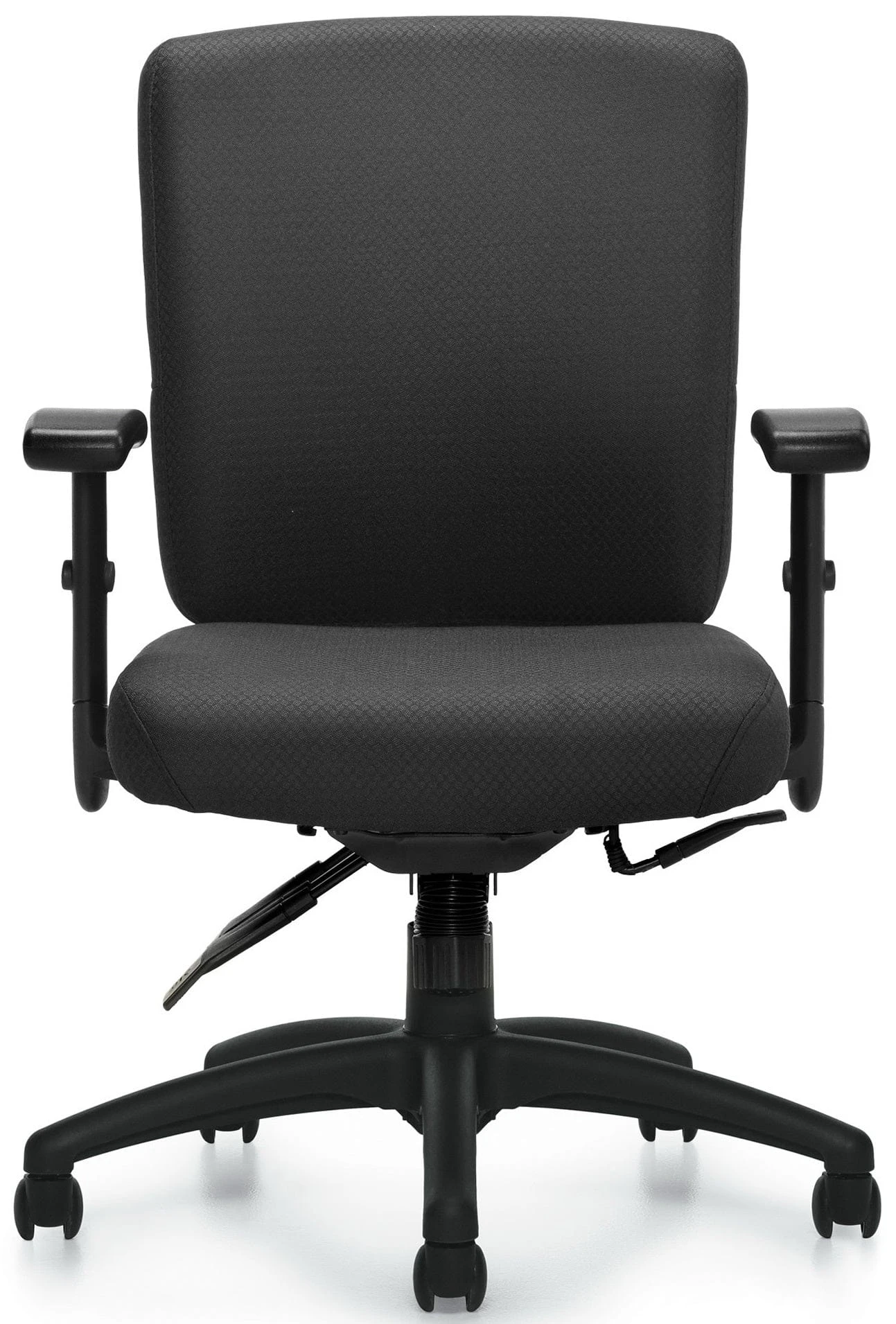 Discover amazing comfort and functionality with this Offices To Go Multi-Function Fabric Office Chair! With commercial-grade patterned black fabric upholstery, a waterfall seat edge to promote circulation, and height adjustable armrests, this chair is ready to take your 9-5 to the next level.