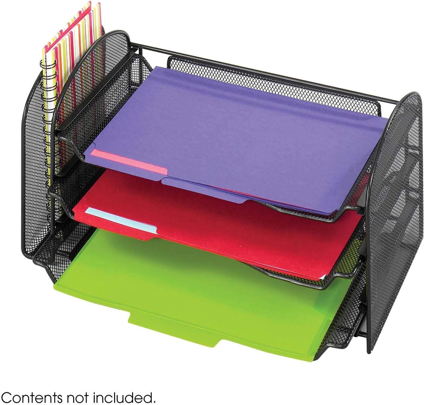 A staple for any office desk, be it home or company, this Safco Onyx Desk Organizer with Sliding Trays has all the important features. Its trays slide for easier access to files without scraping knuckles or struggling to fish out a file. It also features an upright slot for a quick grab for your notebook, appointment book or working file. Constructed with a steel mesh for easy breezy handling.