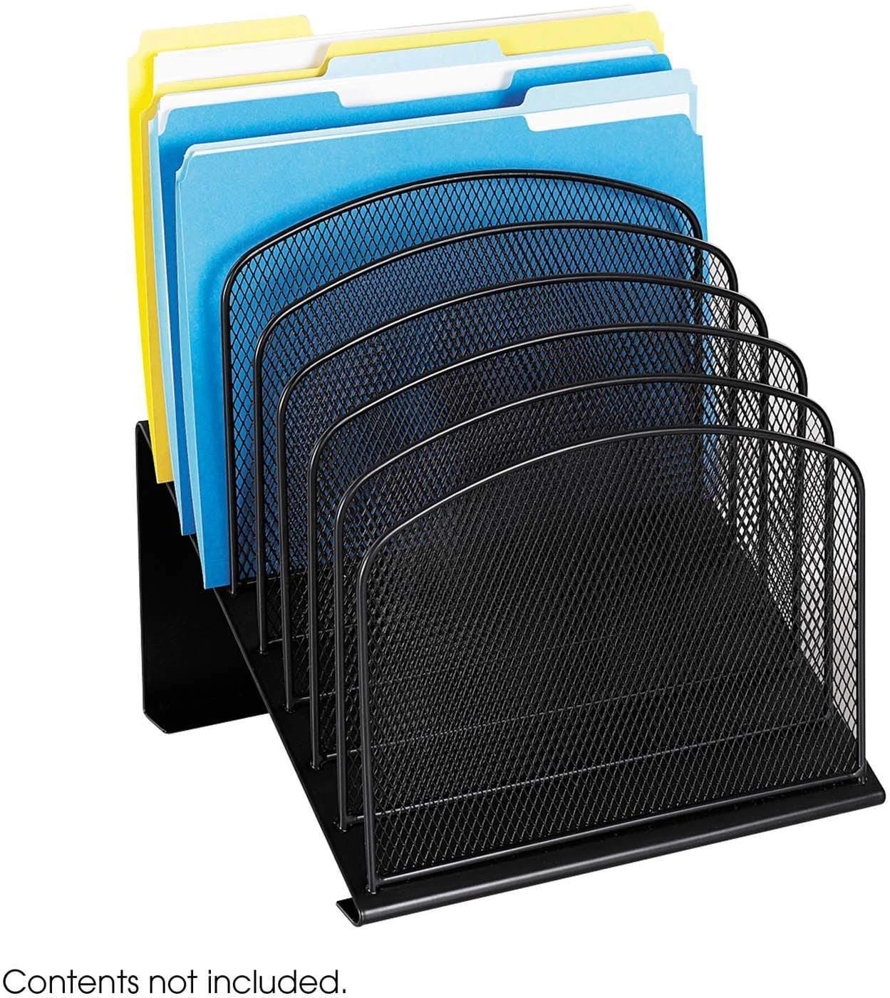Give your desk a sleek contemporary look with the Safco Onyx Mesh Desk Organizer. Each of the eight, one inch tiered sections is designed to hold folders or small binders. Steel mesh construction and a black finish complete the look of this modern-style desk organizer.