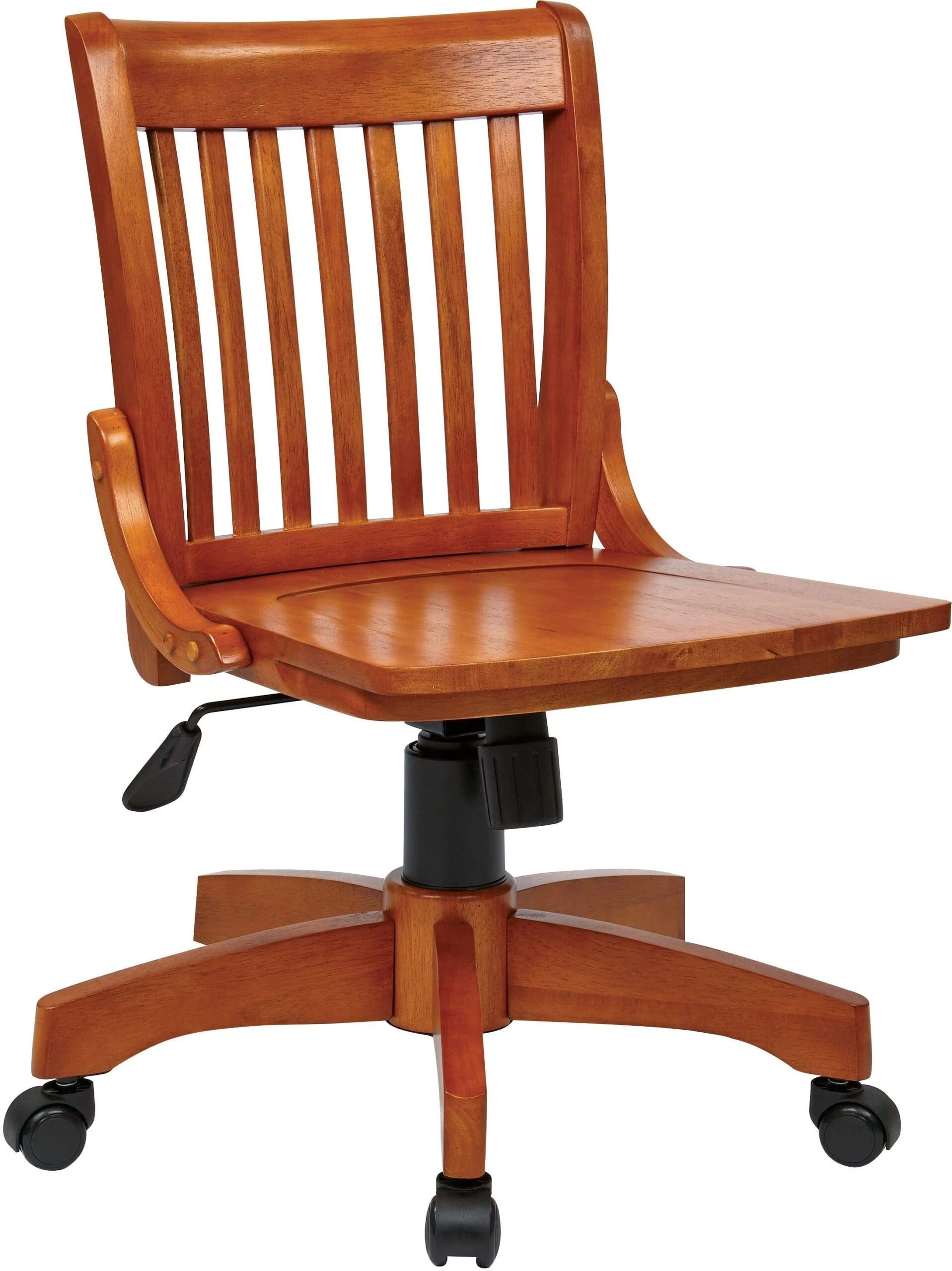 This armless bankers chair from Office Star Products is ideal for any country or traditional institution style room or office setting. The Deluxe Armless Wood Bankers Desk Chair with Wood Seat affords you unadulterated comfort while working or resting.