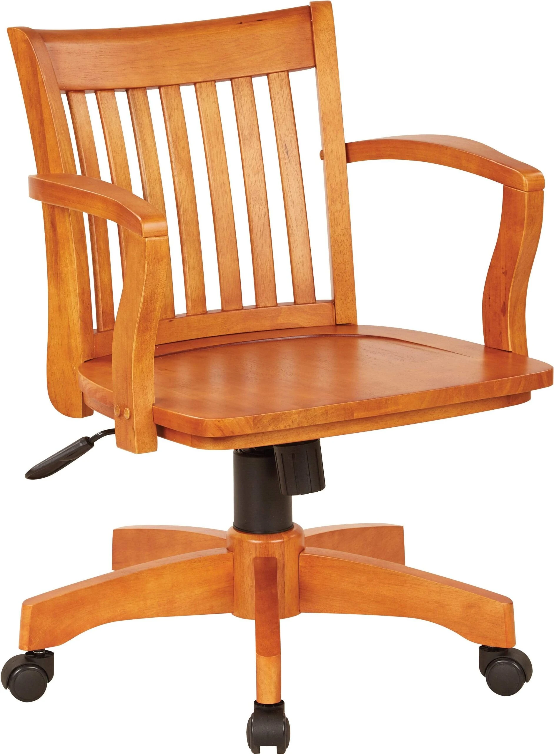 Long-lasting, fashionable and multipurpose are the top characteristics of this wood bankers chair by Office star. This versatile chair looks striking in a fruitwood or espresso finish. A high level of comfort is ensured with its ergonomically designed seat, back and arms. Fine-tune the seat height to your liking using the lever. This swivel chair also moves with casters.