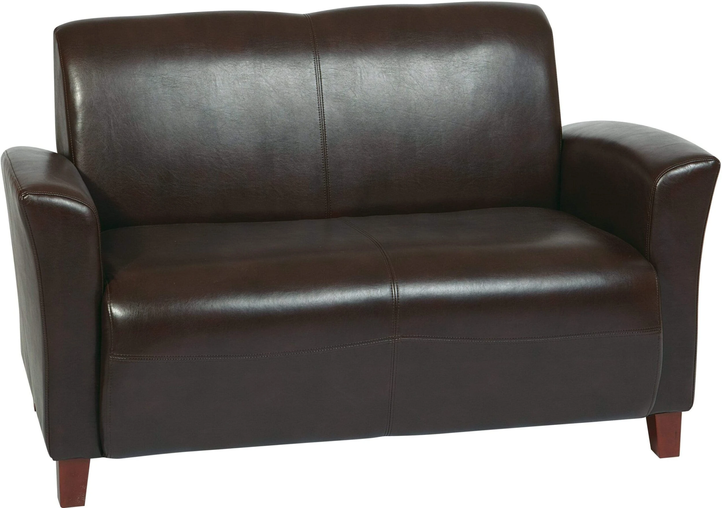 This office loveseat from Office Star features “Eco-Leather” upholstery available in your choice of Wine, Black or Mocha. Eco-Leather is comprised of a faux leather finished surface area with recycled leather backing making it more durable than traditional vinyl’s backed with cotton.