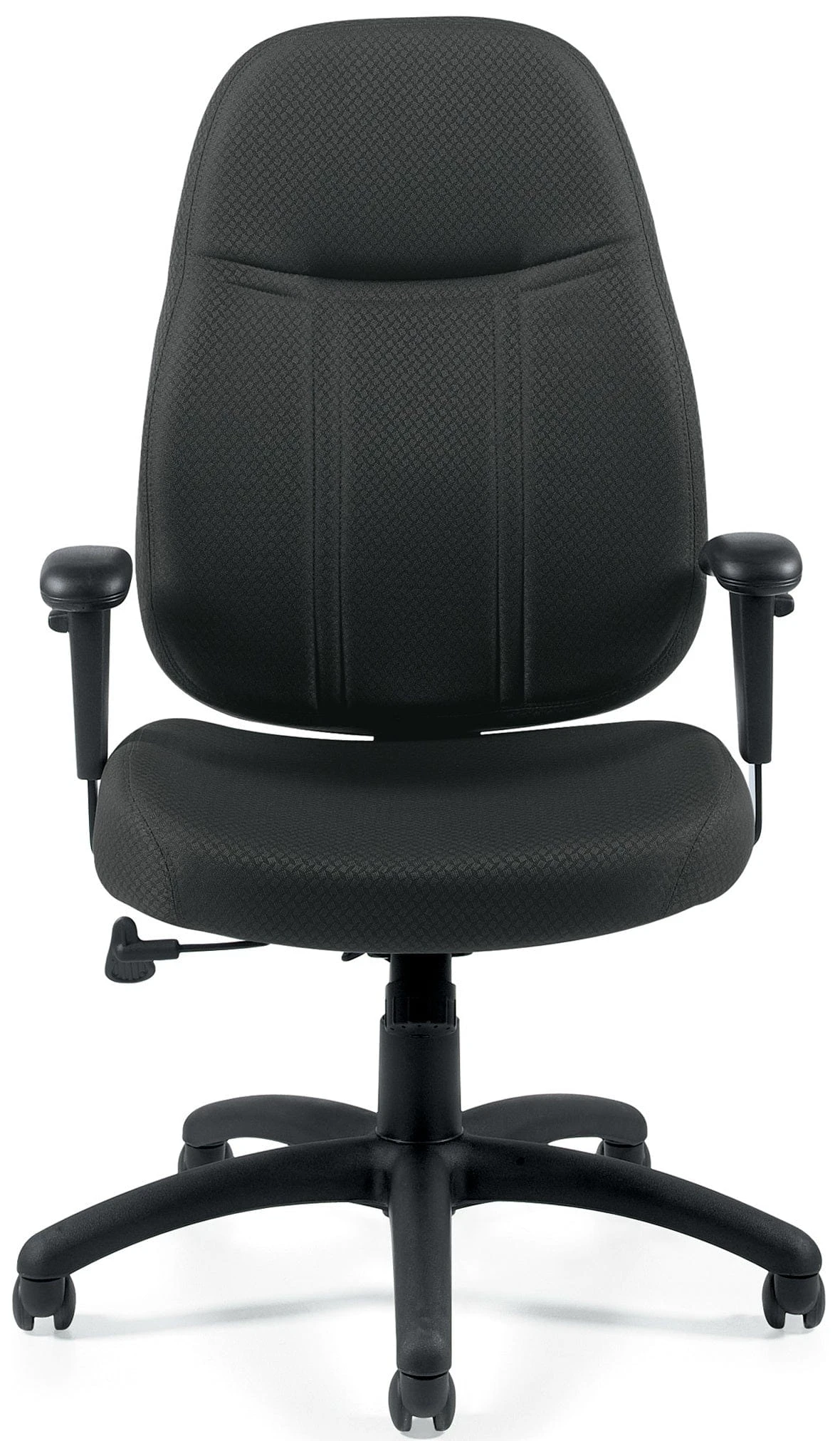 This comfortable high back office task chair from Offices To Goâ„¢ features a durable, textured stain-resistant fabric upholstery over thickly padded seat and backrest cushions. Other features include tilt with tilt lock and tilt tension adjustment, pneumatic seat height adjustment, height adjustable arms, seat depth adjustment, fixed back angle, 360-degree swivel, and a scuff-resistant arched molded base with twin wheel carpet casters. This chair meets or exceeds ANSI/BIFMA standards.