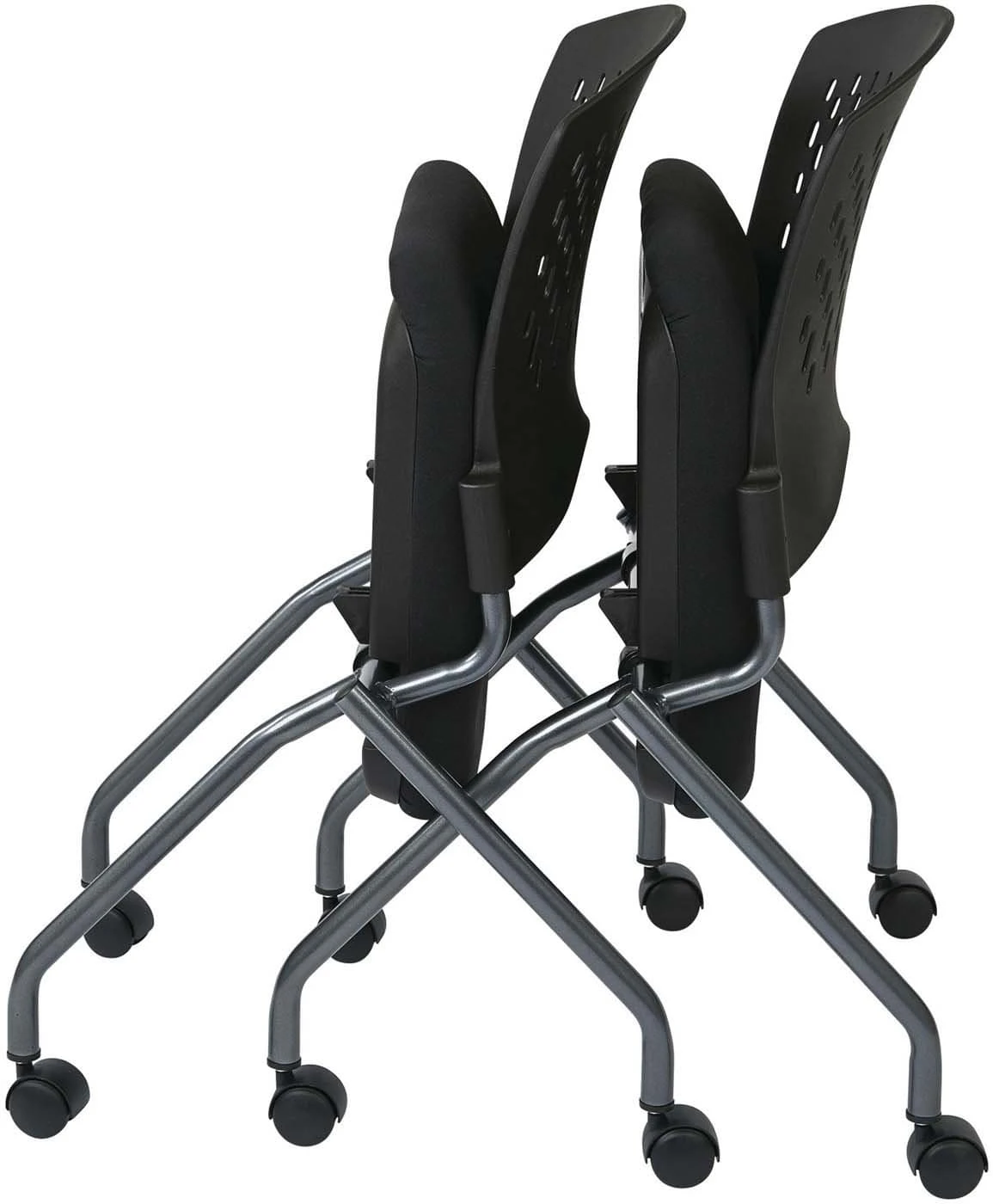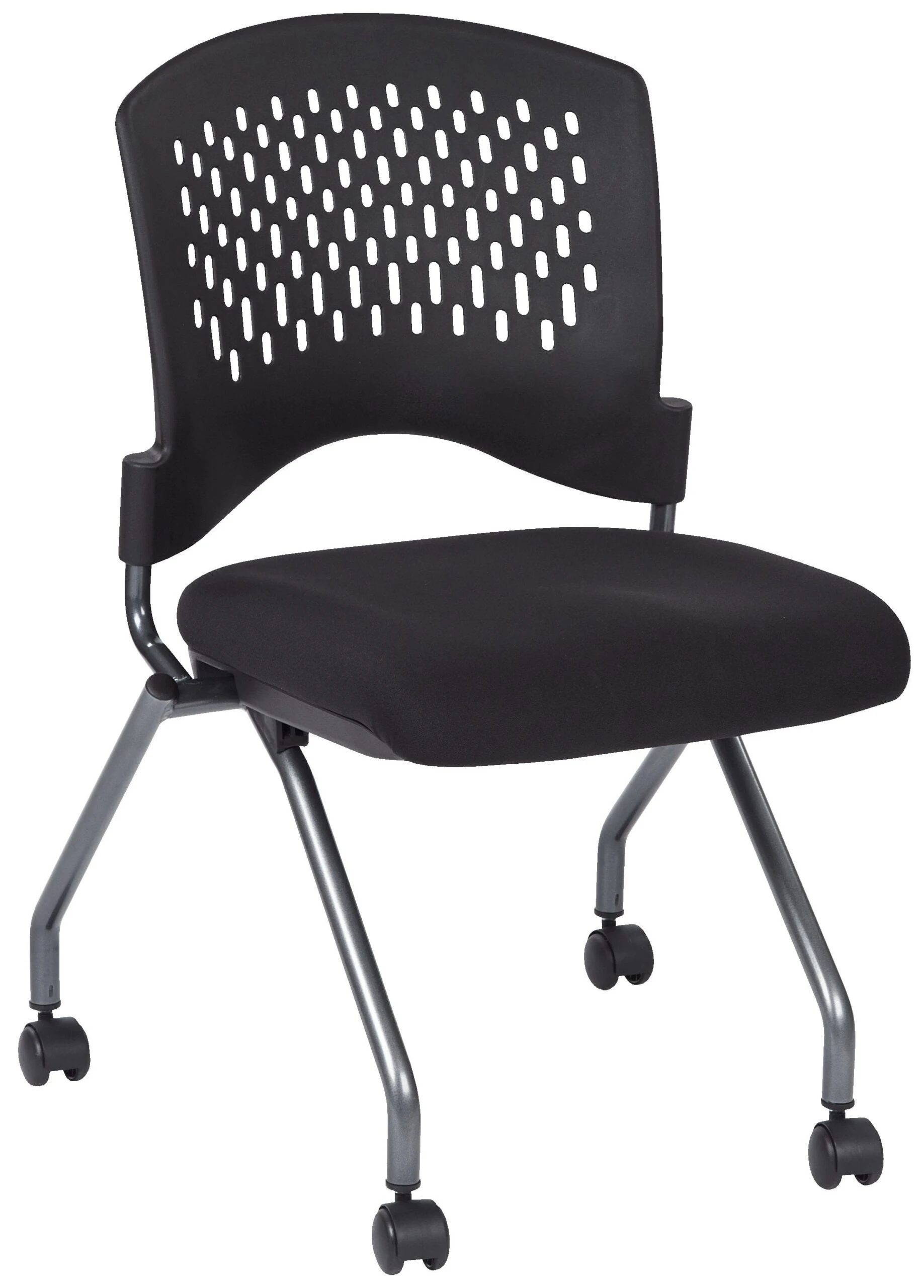 Offer your guests a seat on the comfortable Pro-Line II™ deluxe armless folding chair made with a sturdy titanium frame. These chairs come complete with dual-wheel carpet casters for easy mobility. These chairs are designed to fold up horizontally to allow them to be nested so you can free up space in your office when not in use. These chairs are sold in sets of 2 and are backed by a limited lifetime warranty.