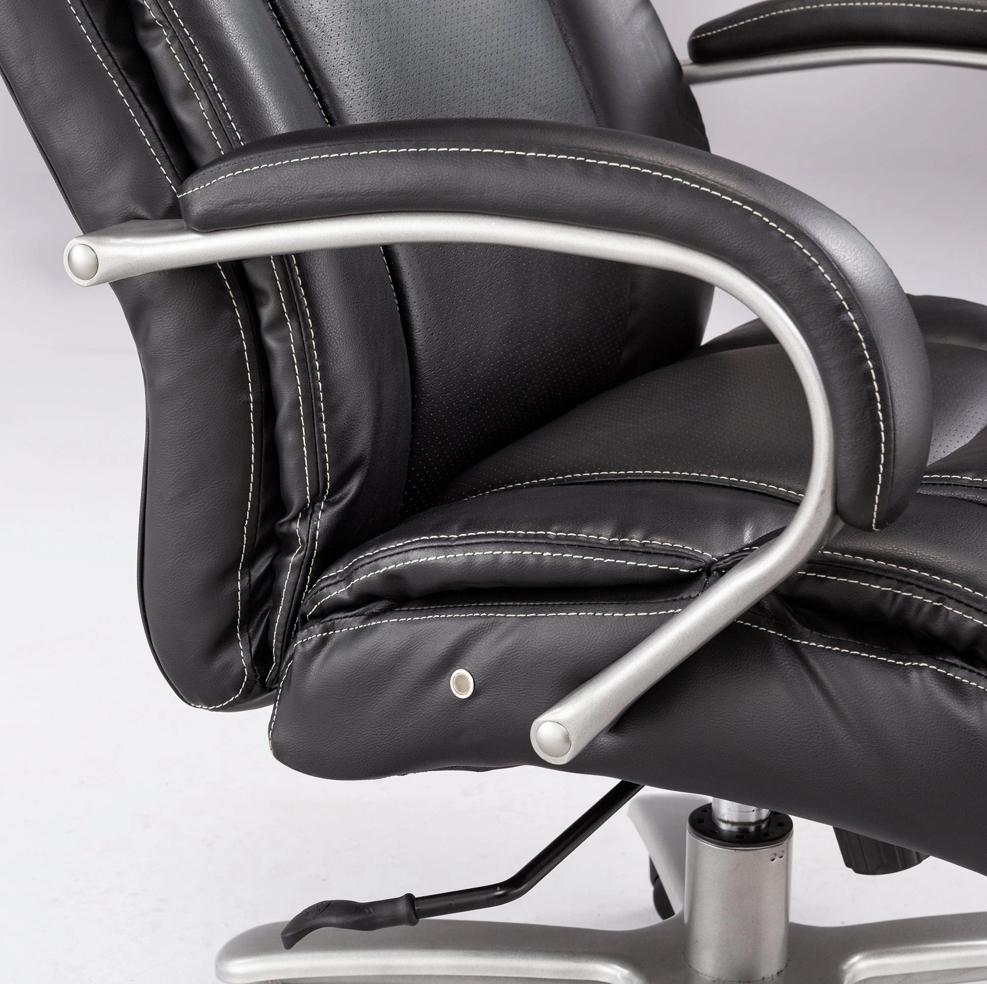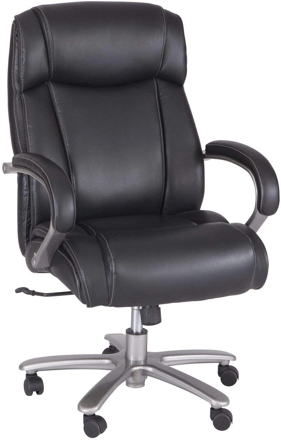 Lineage™ Big & Tall High Back Executive Chair is ideal for use in personal workspaces or conference rooms. The high back is ideal for supporting big and tall users and features rich black, bonded leather on all seating surfaces for a comfortable and professional-looking chair. Designed with heavy-duty height and tilt mechanisms that allow the user to quickly and easily adjust the height and tilt of the chair to their optimal comfort level. Seat height is adjustable from 20.5 – 24″H to suit a variety of users. This long-lasting chair also features chrome metal armrests with upholstery pads for comfortable, ergonomic support. The sturdy 29” chrome metal base is mobile on 55mm, heavy-duty casters to provide smooth movement across the workspace. Rated up to 500 lbs.