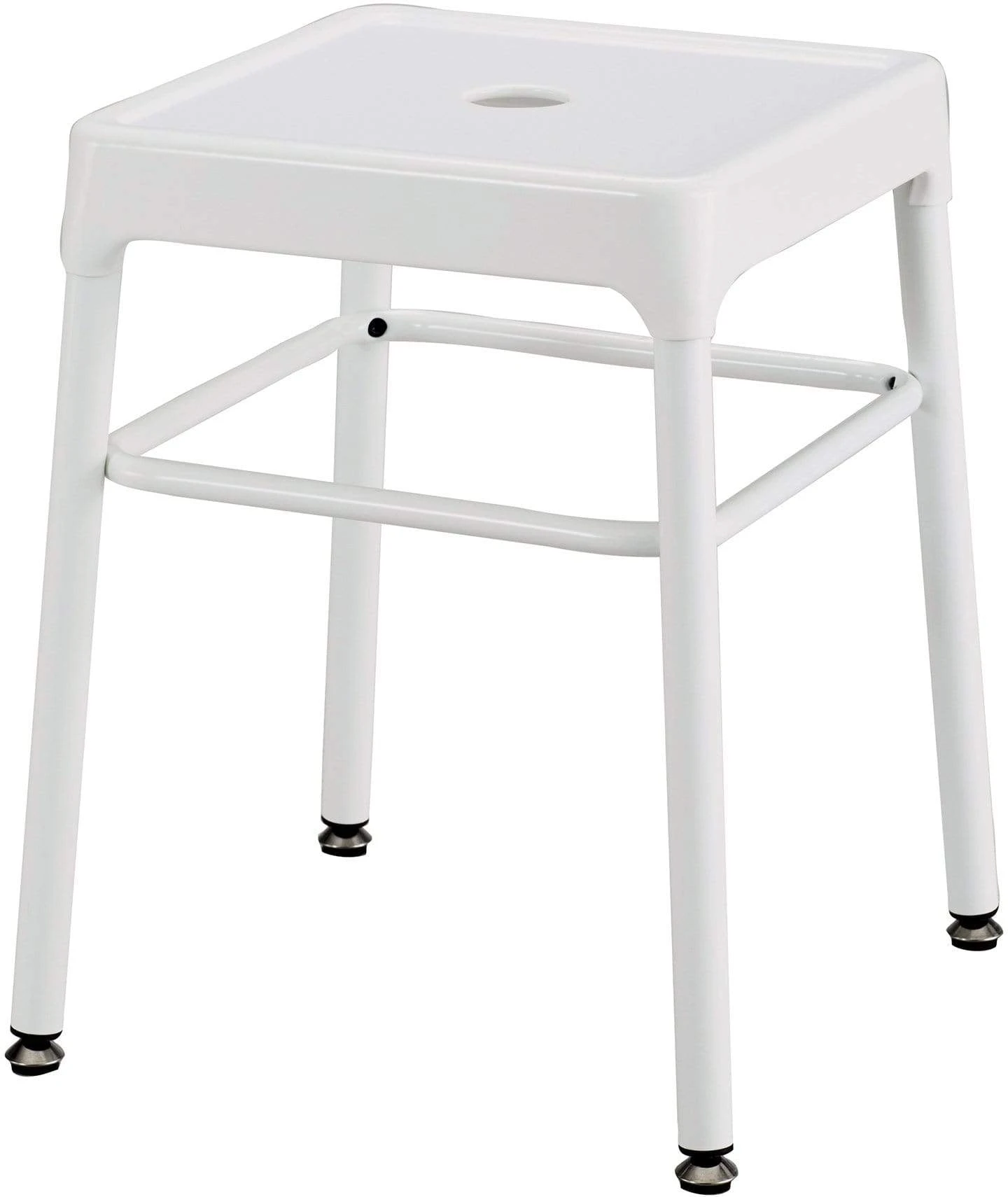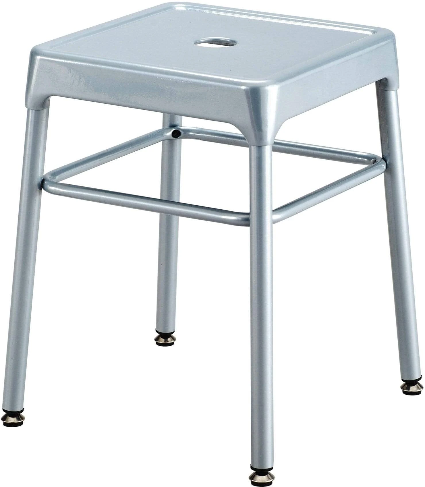 The Safco® Steel Guest Stool is a sturdy, all steel stool that is great for use in a variety of spaces. The new guest-height stool is perfectly suited for use in breakrooms, open floor plans, personal workspaces, lobbies and more. The easy-to-clean powder coat finish is durable and chip-resistant for a long-lasting seating option. These stools include choice of nylon leg caps or leveling glides to protect floors from scratches or scuffs. The hole in the top of the seat allows the chair to be easily grabbed and carried to allow for portability between spaces. Available in Black, Silver, Red or White color options to suit personal preference or decor. Available to ship within 48 hours for convenient and fast delivery.