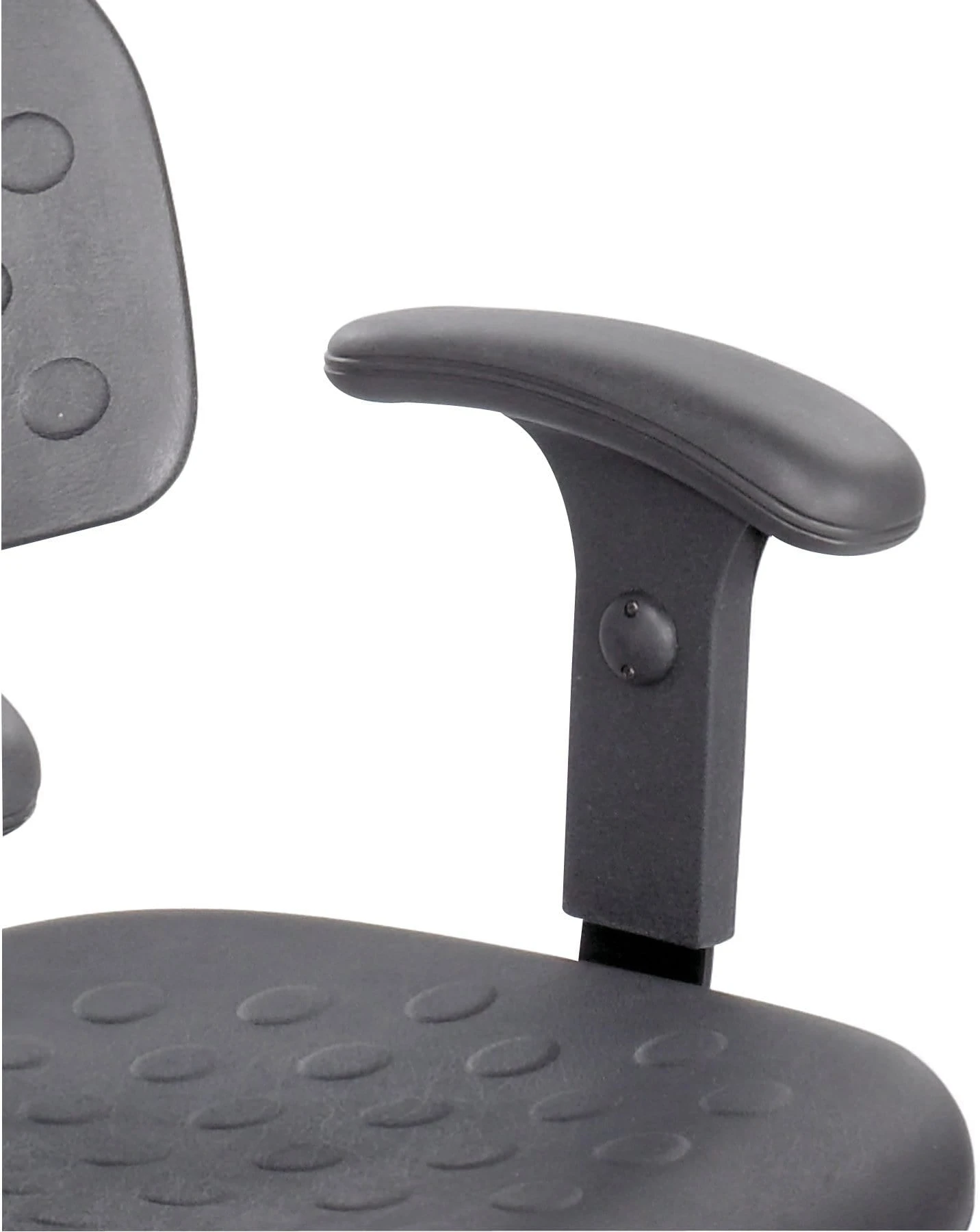 The Soft Tough™ Adjustable T-Pad Arm is a set of stool arm accessories. The durable stool arms are adjustable T-pad armrests for Soft Tough stools, models 6912 and 6902.
