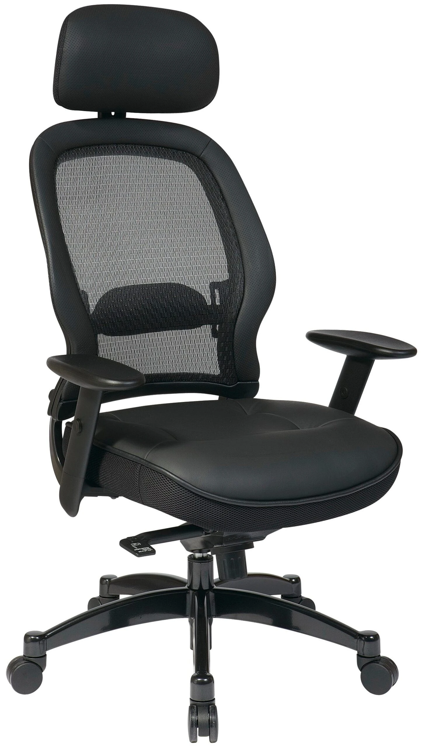 These ergonomic mesh chairs feature a thickly padded contoured seat in your choice of black mesh fabric or top cowhide leather. Features Herman Miller Aeron chair styling including a mesh screen back, adjustable lumbar support, adjustable armrests, height and depth adjustable headrest, infinite lock 2-to-1 synchro tilt with tilt tension control (back reclines at a 2-to-1 ratio to the seat angle. Allows the user to recline while keeping seat cushion relatively level to floor. Chair can also be locked in any tilted position), knee tilt control, pneumatic seat height adjustment and a heavy-duty metal base with dual wheel casters.