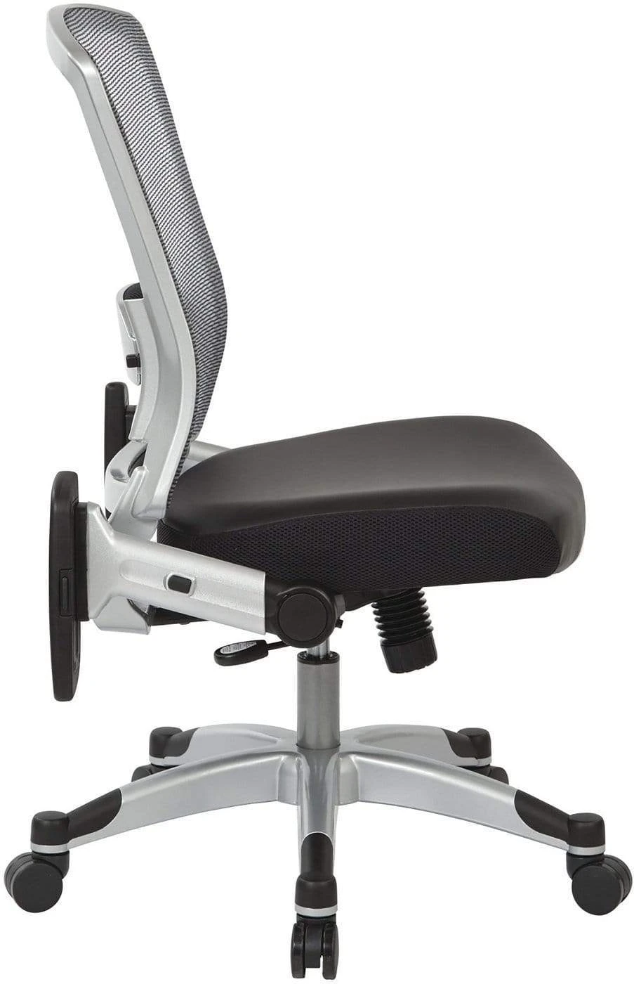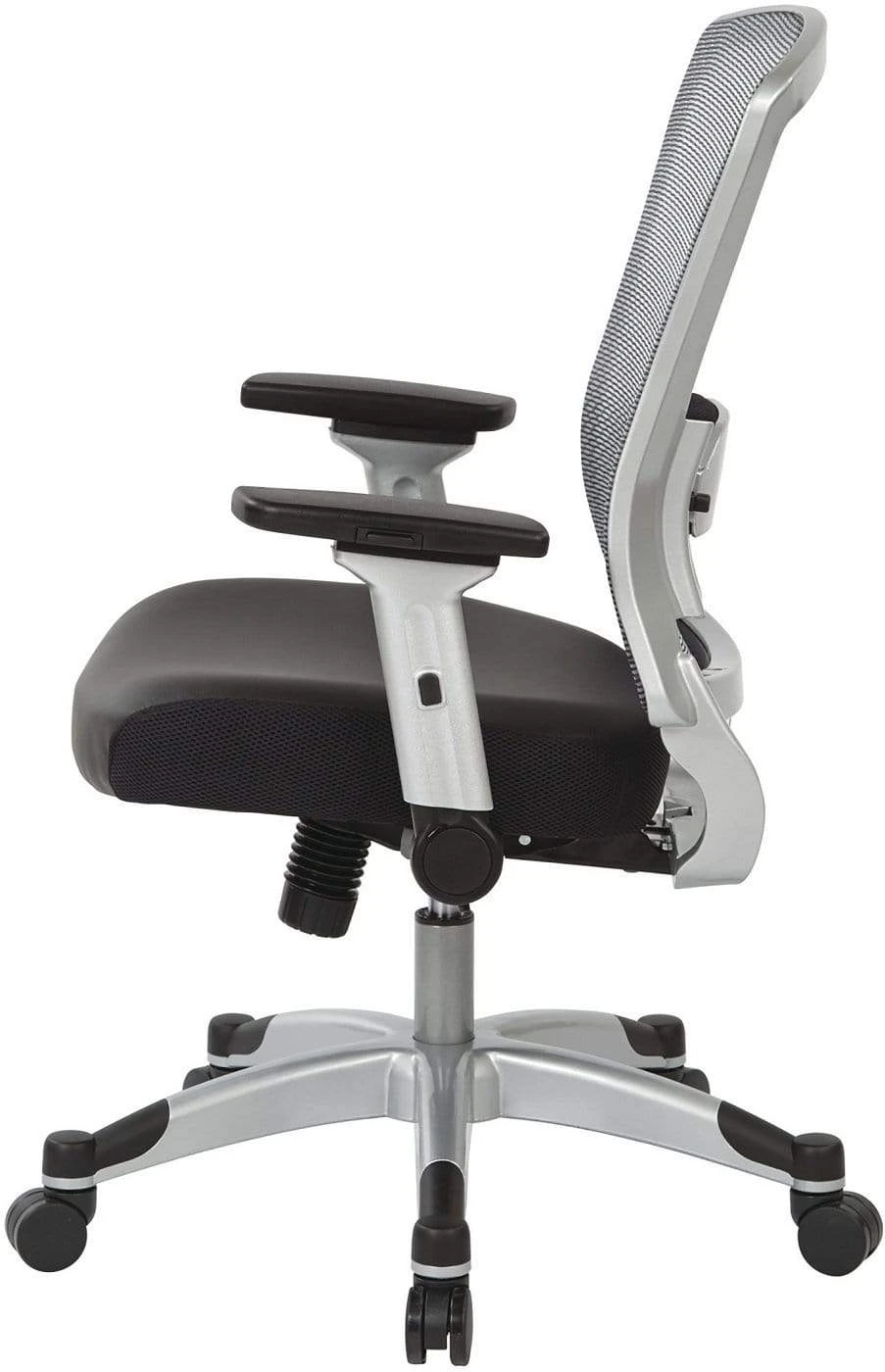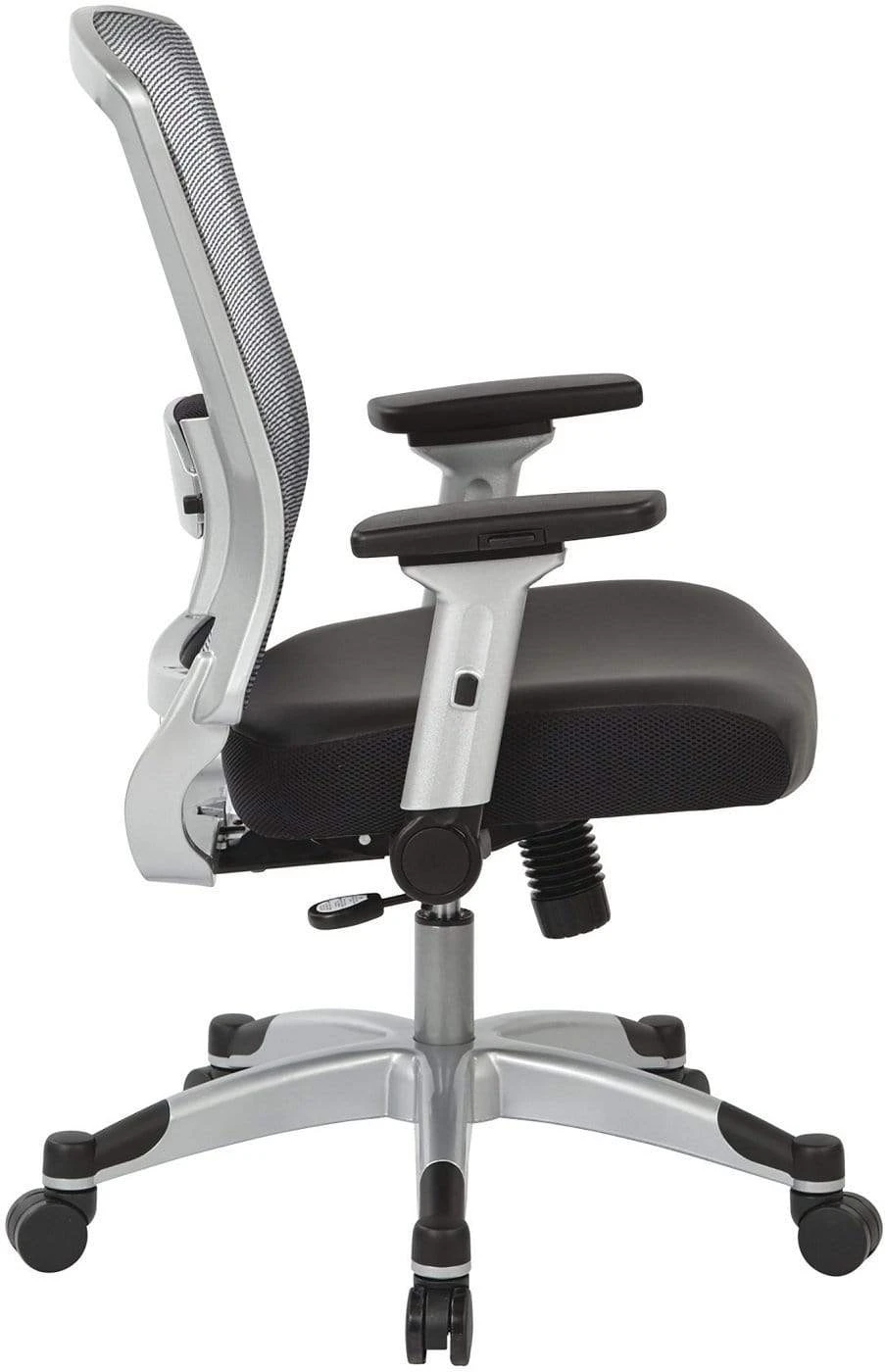 This Professional Light Air Grid Chair with Memory Foam offers just the right amount of functionality without obstructing comfort. Complete with built in Lumbar Support that is fully customizable and adapts to your frame whether small, medium or large. The breathable mesh back and eco leather seat with memory foam will keep you comfortable throughout the work day. The padded arms can be flipped down horizontally so they can be moved out of the way when needed.