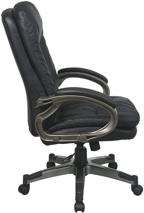 This executive office chair from Office Star features soft eco-leather upholstery. Eco-leather consists of a faux leather finished surface area with recycled leather backing making it more durable than traditional vinyl’s backed with cotton.
