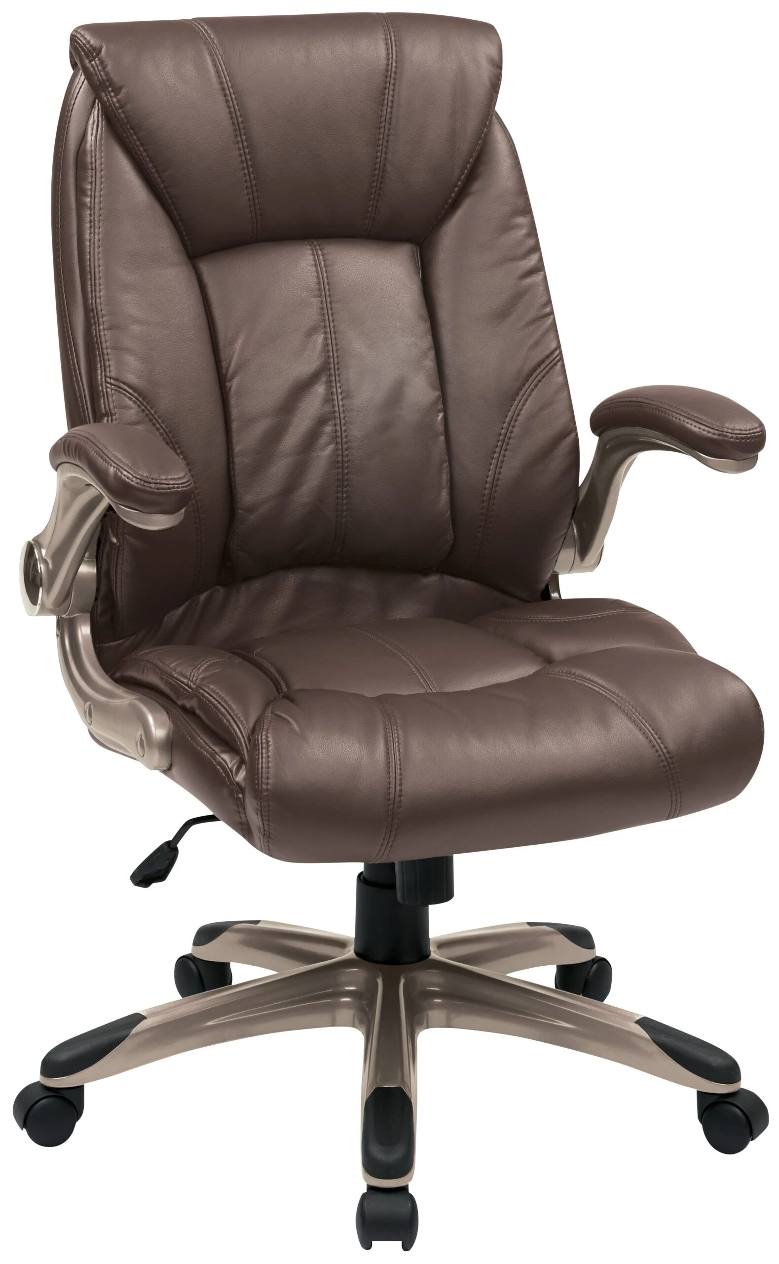 Surround yourself in comfort with this mid back office chair from Office Star. It features a thickly padded espresso faux leather with a Cocoa colored base and arm frame.